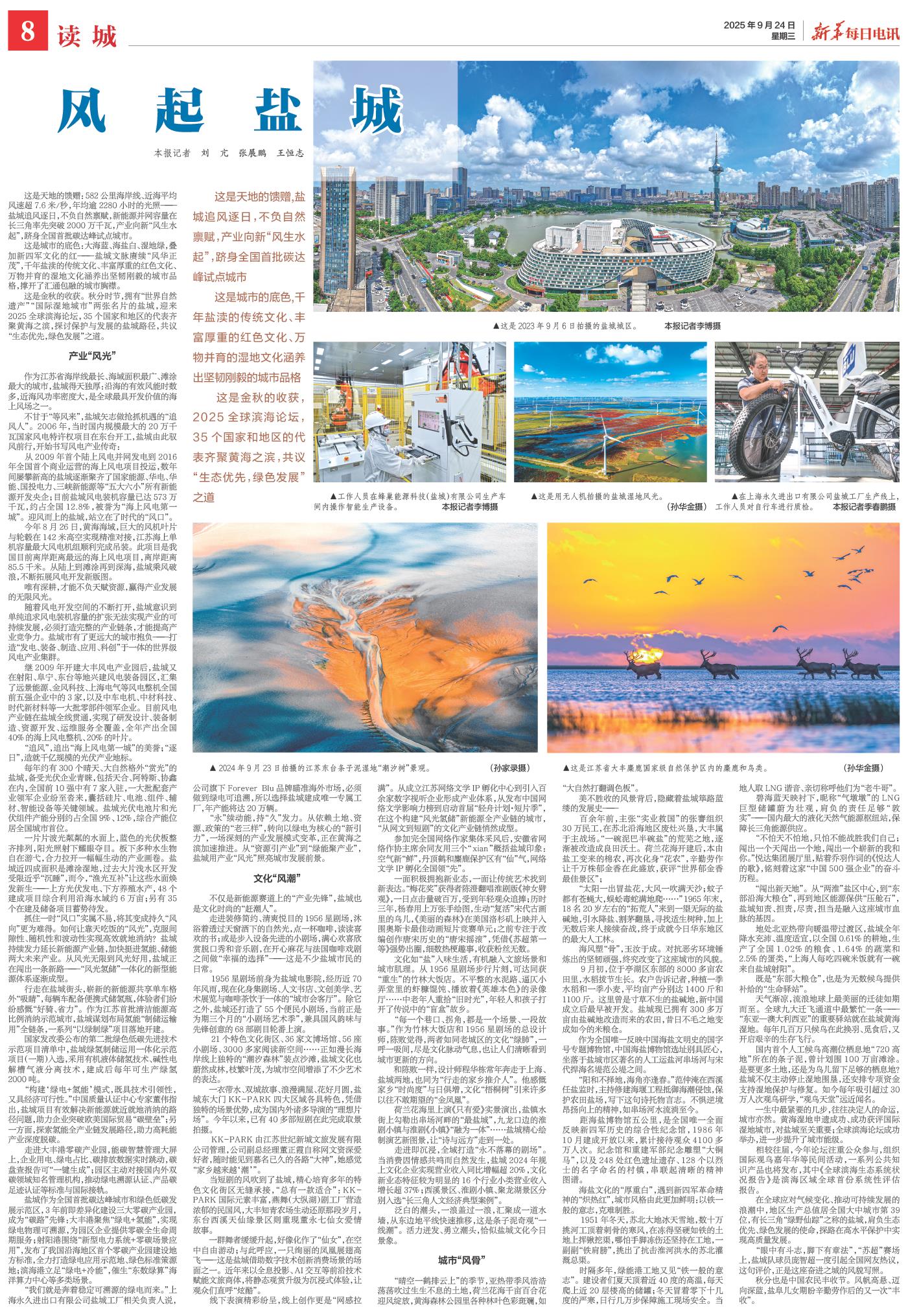 这是金秋的收获。秋分时节,拥有“世界自然遗产”“国际湿地城市”两张名片的盐城,迎来2025全球滨海论坛,35个国家和地区的代表齐聚黄海之滨,探讨保护与发展的盐城路径,共议“生态优先,绿色发展”之道。