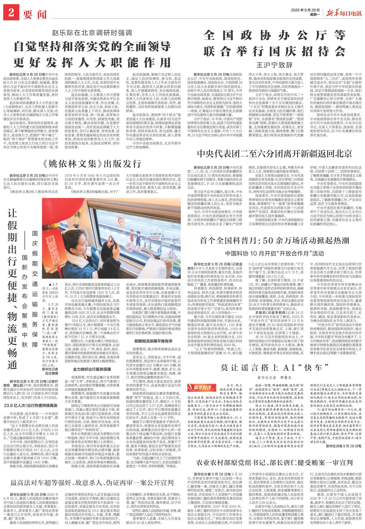 ( 2025-09-29 ) 稿件来源:新华每日电讯 要闻
