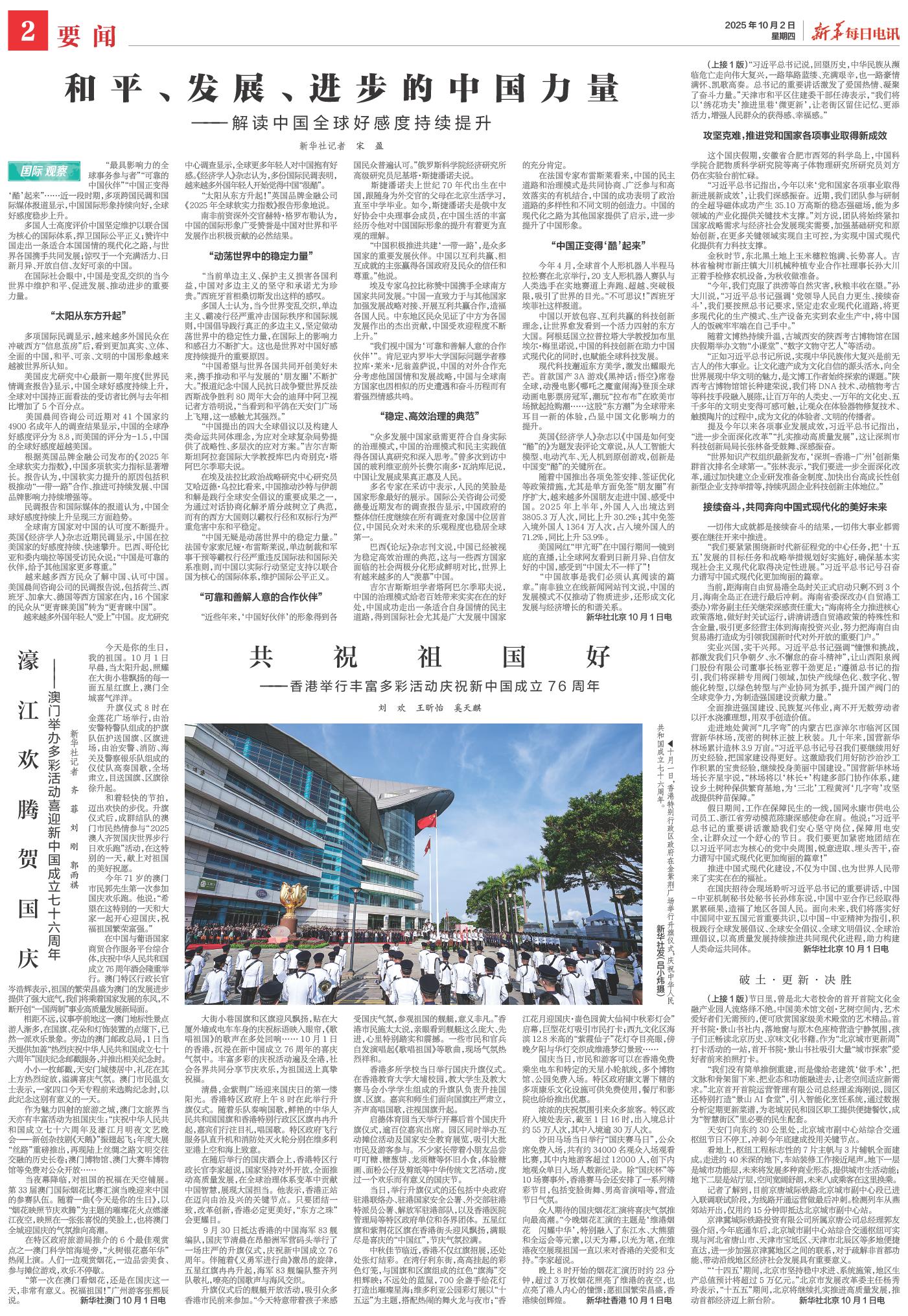 | ( 2025-10-02 ) 稿件来源:新华每日电讯 要闻 |