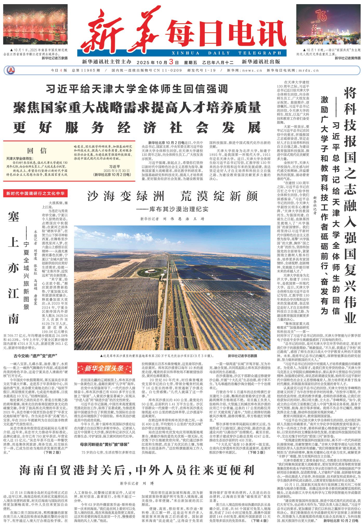 | ( 2025-10-03 ) 稿件来源:新华每日电讯 要闻 |