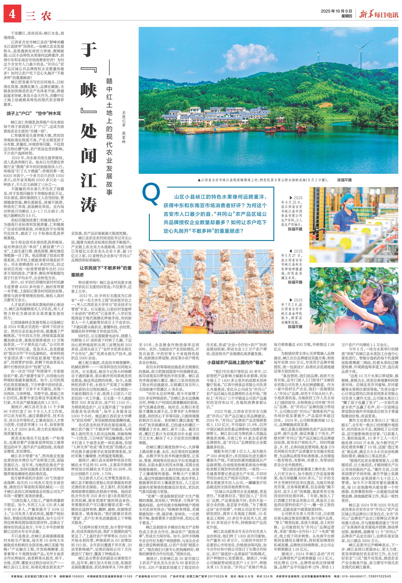 江西省吉安市峡江县因“群峰夹赣水江面狭窄”而得名,一如峡江农业发展势头,虽曾遇狭处却活力奔涌、频频破题:山区小县特色水果缘何远跨重洋,获得中东和东南亚市场消费者好评?为何这个吉安市人口最少的县,“井冈山”农产品区域公共品牌授权企业数量却最多?如何让农户吃下定心丸抛开“不敢多种”的重重顾虑?