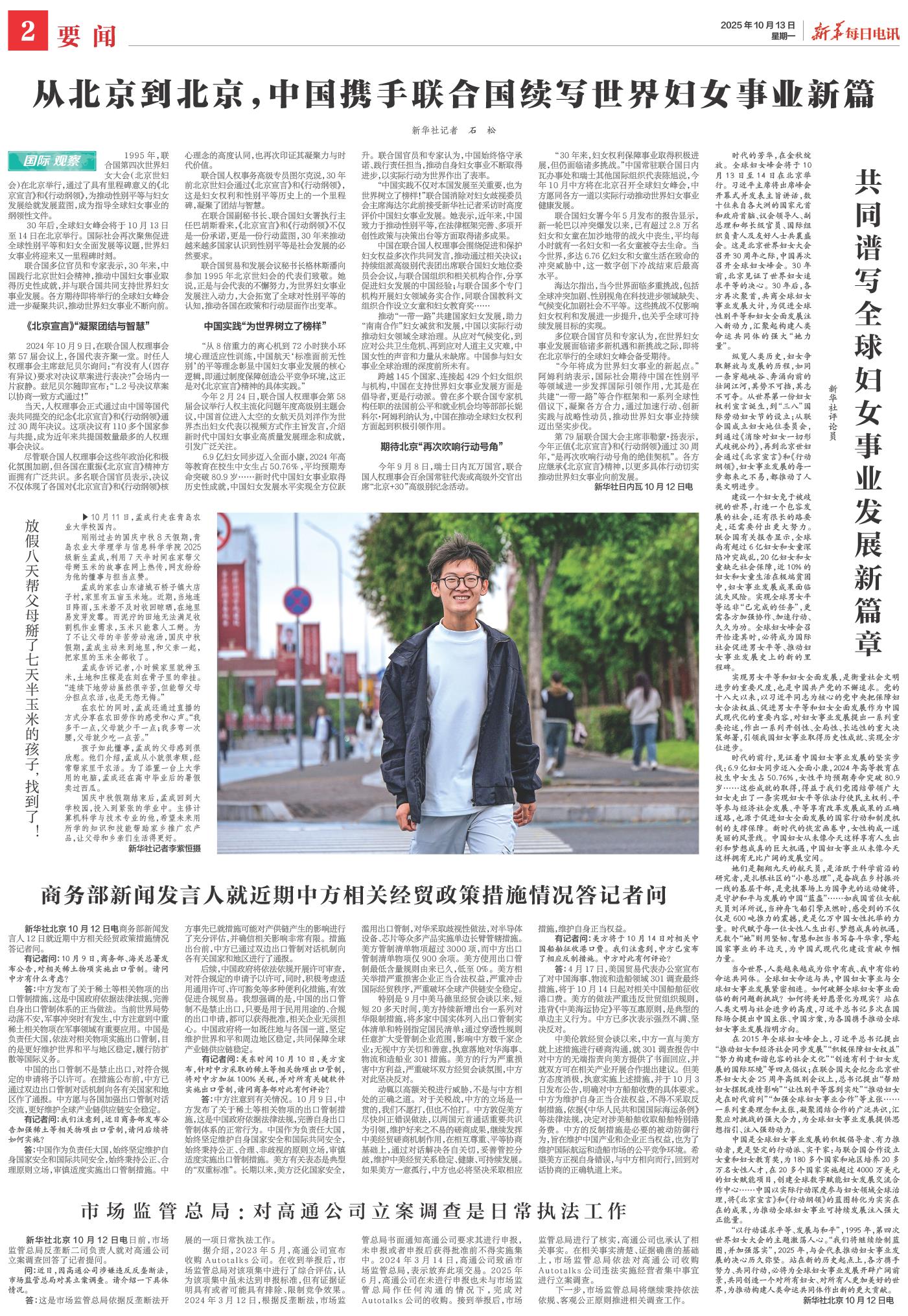 | ( 2025-10-13 ) 稿件来源:新华每日电讯 要闻 |