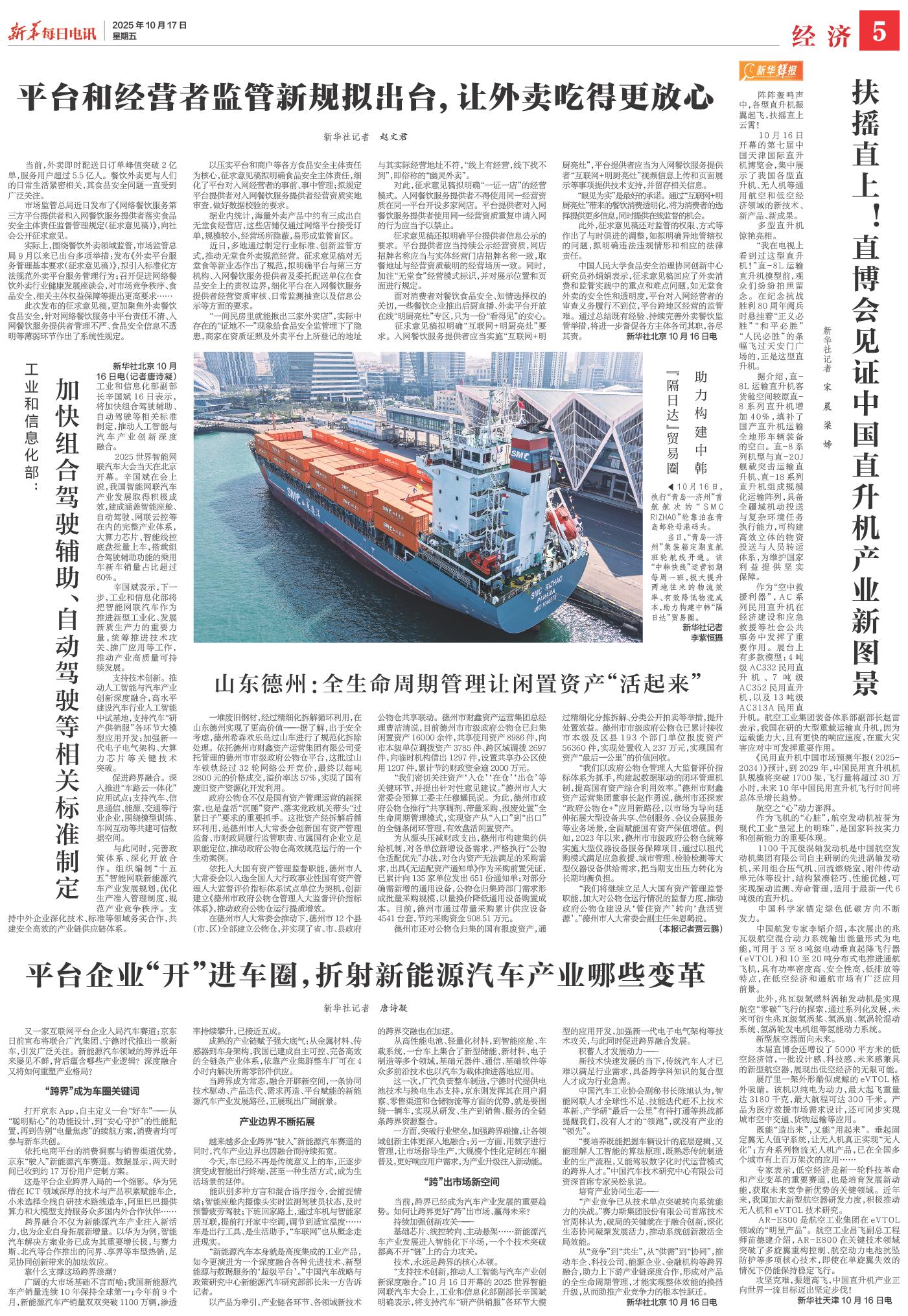 | ( 2025-10-17 ) 稿件来源:新华每日电讯 经济 |