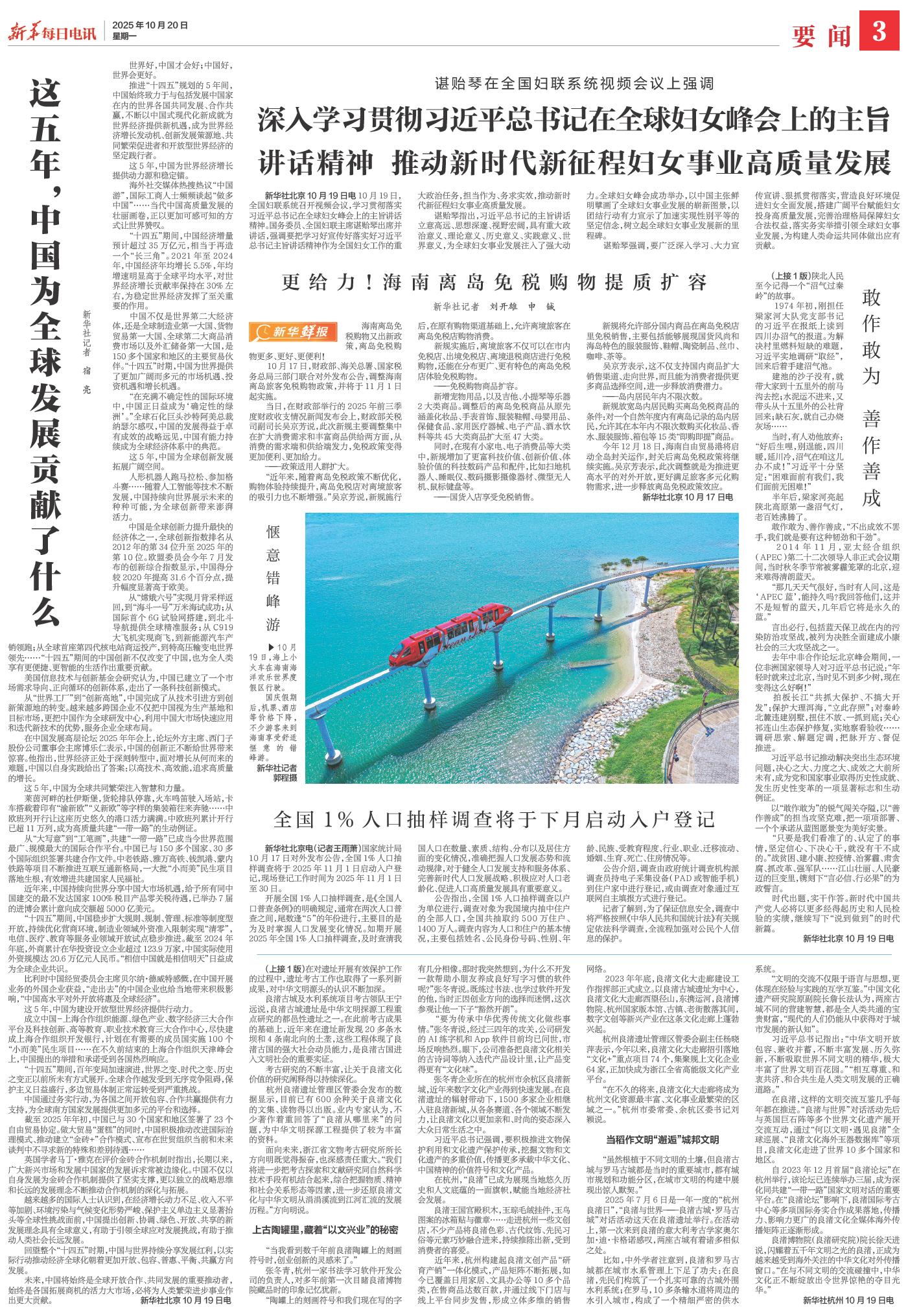 | ( 2025-10-20 ) 稿件来源:新华每日电讯 要闻 |