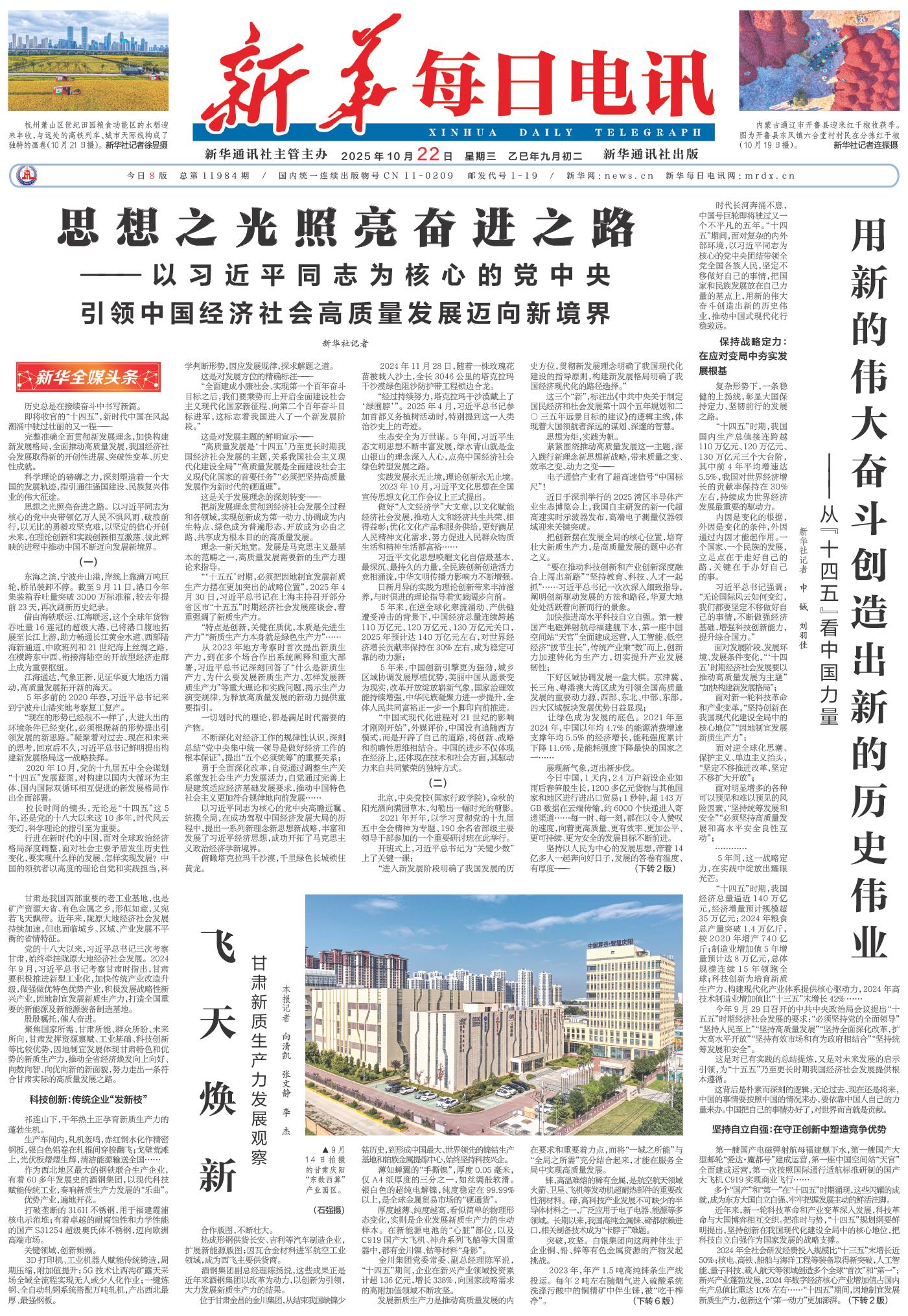 从广袤无垠的戈壁滩到沟壑纵横的黄土高原,酒钢集团、金川集团、白银集团这三颗甘肃“工业明珠”,抓住科技创新“牛鼻子”,摆脱对传统资源的过度依赖、对既有发展路径的惯性依赖,不断催生新产品、新业态和新模式,成为甘肃省属企业发展新质生产力的缩影。