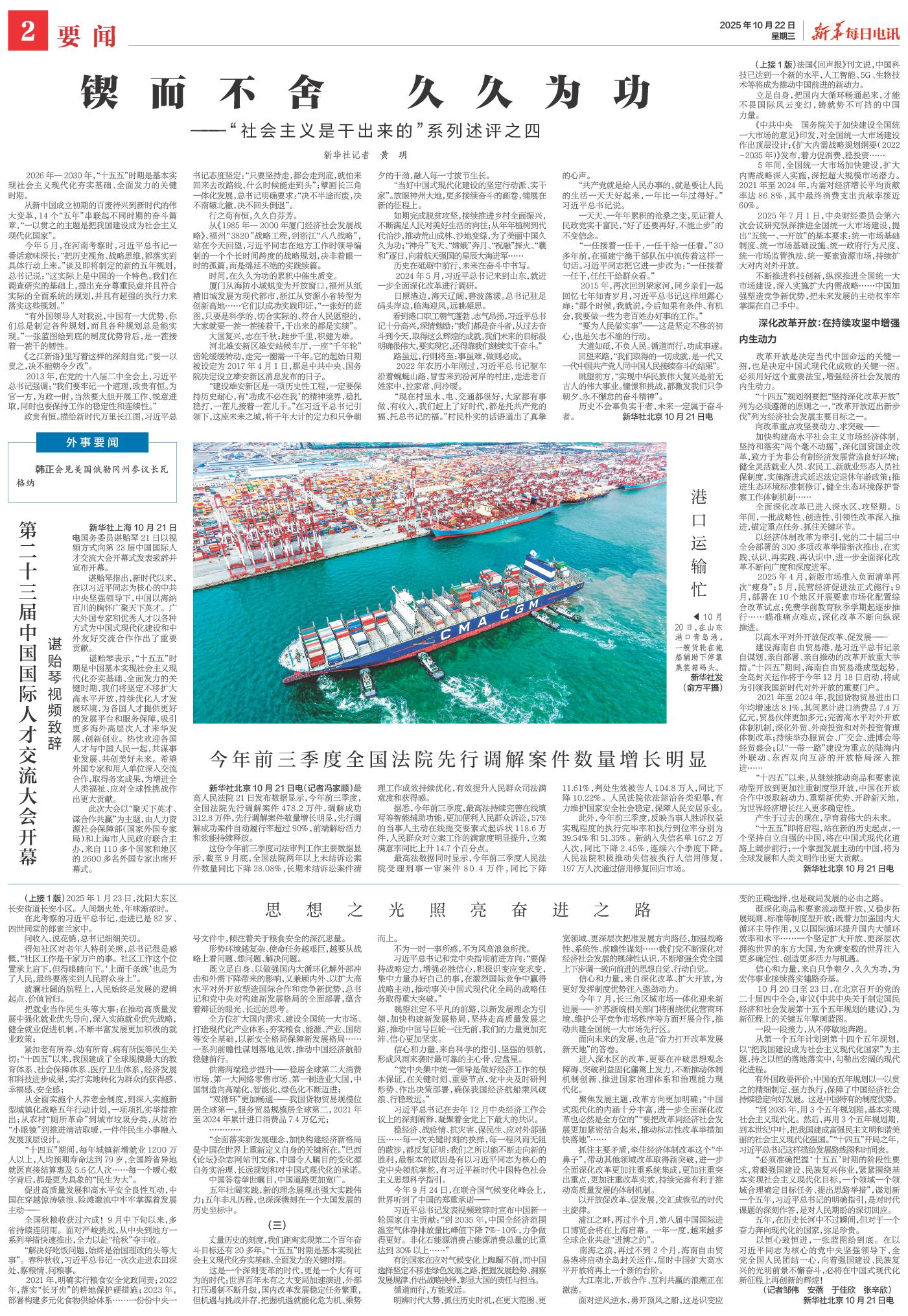 | ( 2025-10-22 ) 稿件来源:新华每日电讯 要闻 |