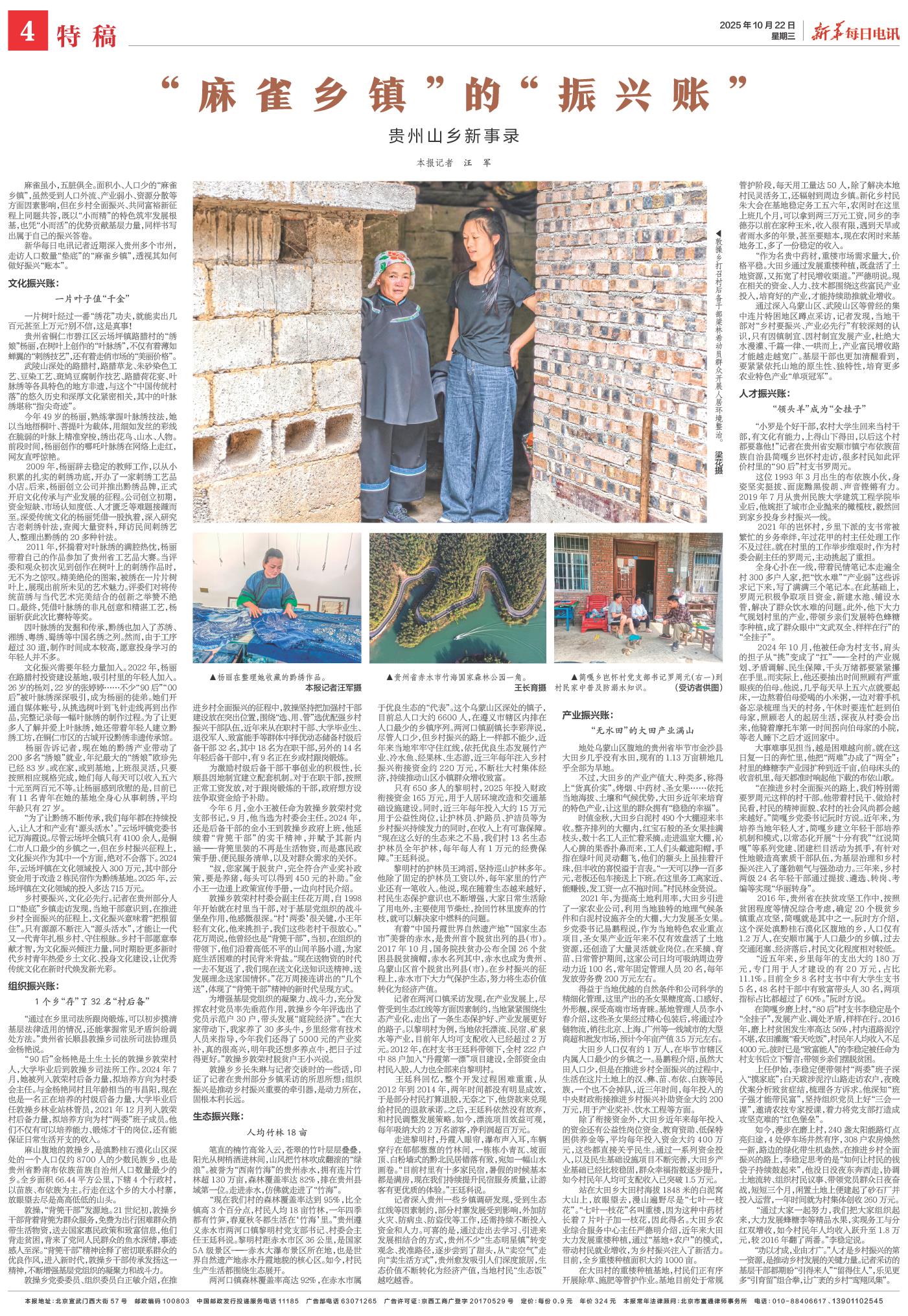 新华每日电讯记者近期深入贵州多个市州,走访人口数量“垫底”的“麻雀乡镇”,透视其如何做好振兴“账本”。
