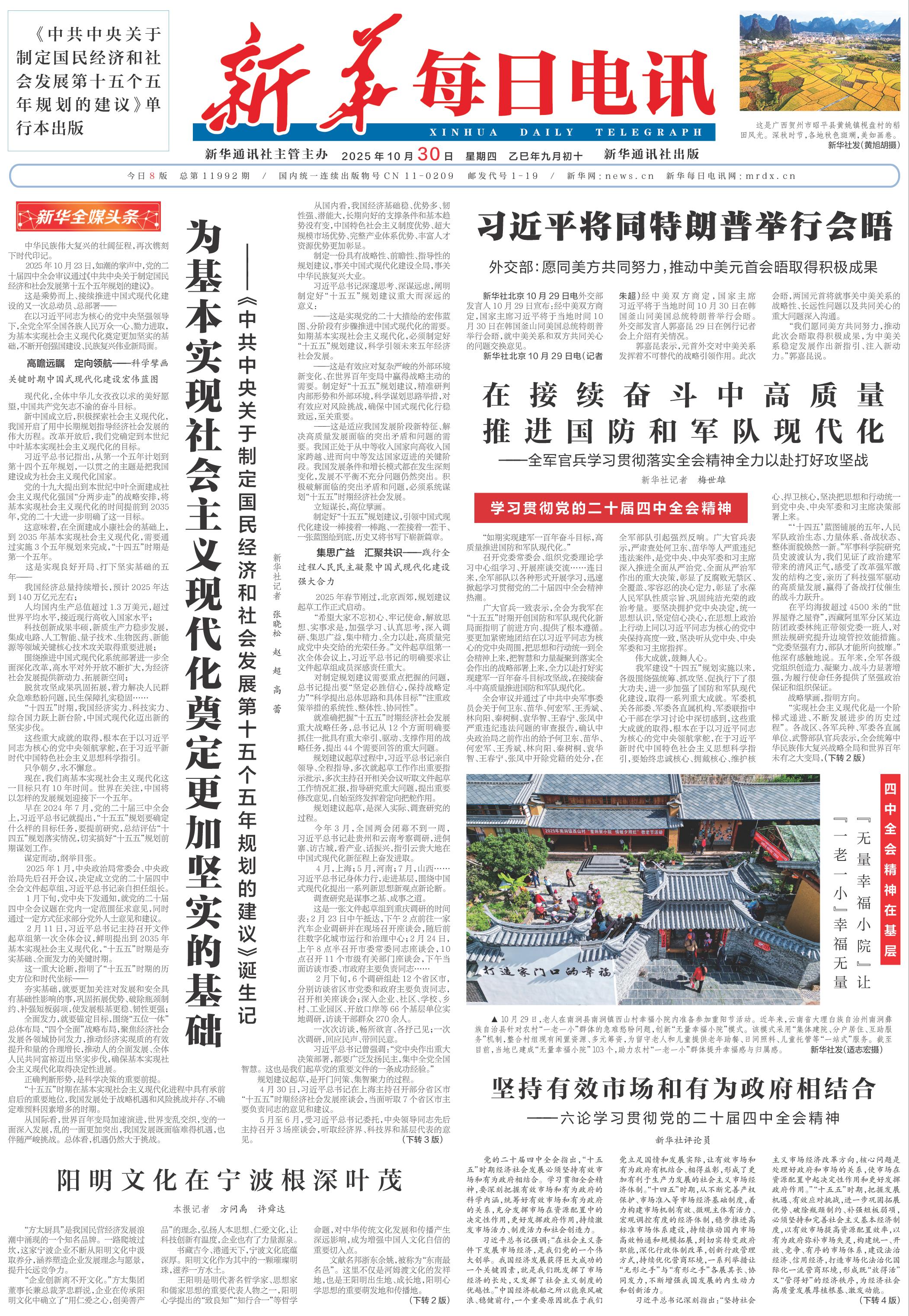 | ( 2025-10-30 ) 稿件来源:新华每日电讯 要闻 |