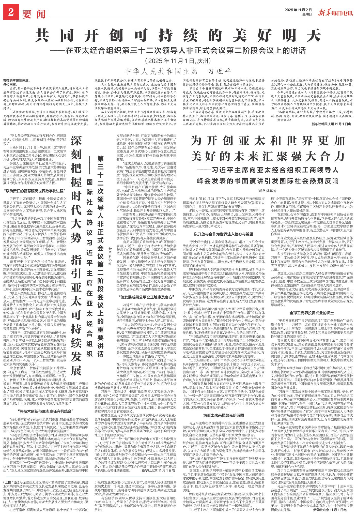 | ( 2025-11-02 ) 稿件来源:新华每日电讯 要闻 |
