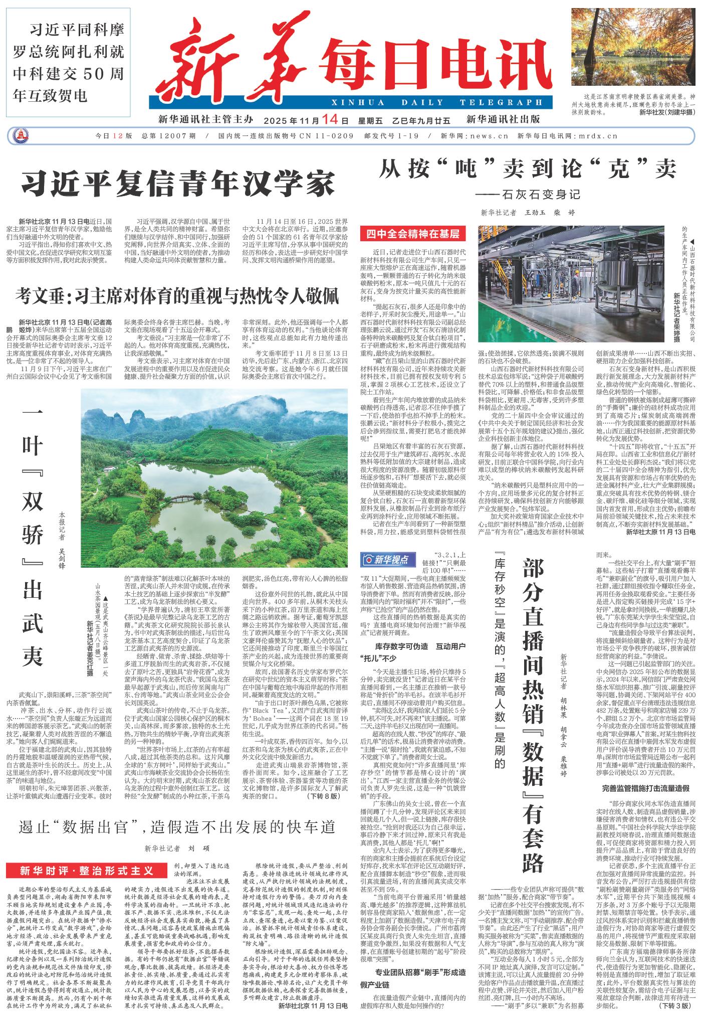 | ( 2025-11-14 ) 稿件来源:新华每日电讯 要闻 |