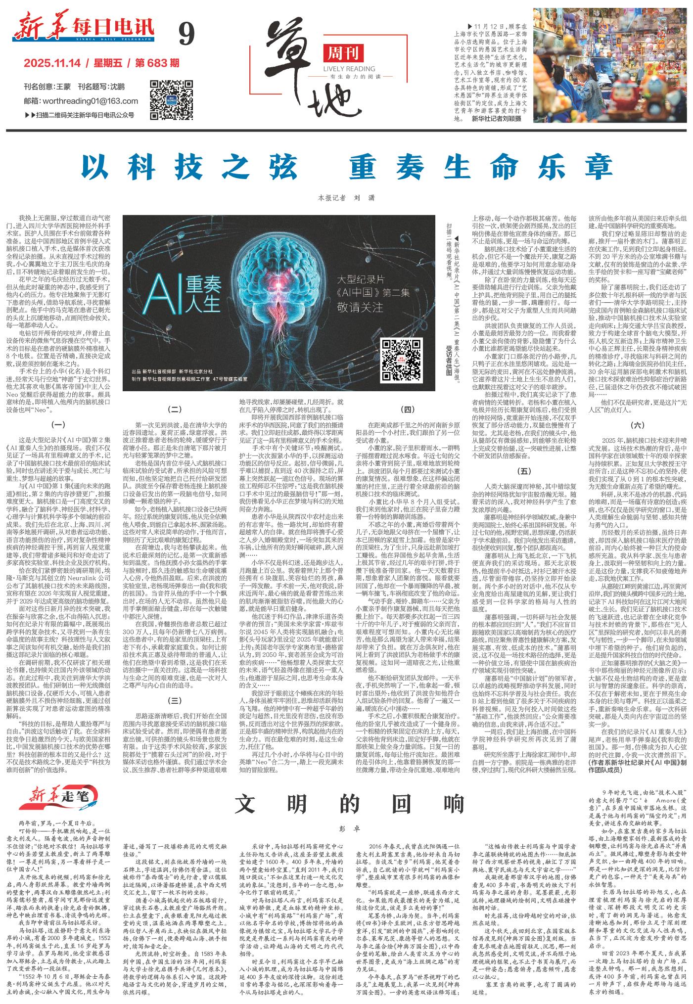 历经数月的采访拍摄,虽终日奔波,却因深入脑机接口临床医疗的最前沿,而内心始终被一种巨大的使命感所充盈。我从科学家、医生与患者身上,汲取到一种坚韧和向上的力量。正是这份力量,支撑我不知疲倦地奔走,忘我地伏案工作。