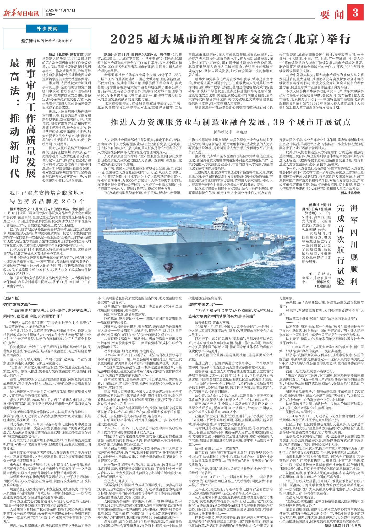 ( 2025-11-17 ) 稿件来源:新华每日电讯 要闻