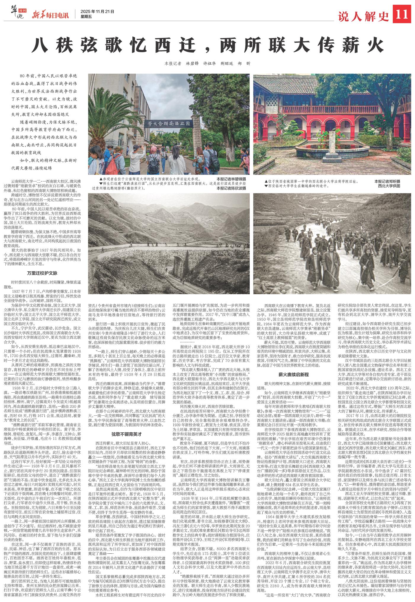 八秩光阴流转,这份浸润着烽烟与坚韧的西迁记忆从未褪色。凝结着家国情怀与治学初心的联大薪火,将继续在中华大地上永续相传,以其光热赓续文脉、滋养后学。