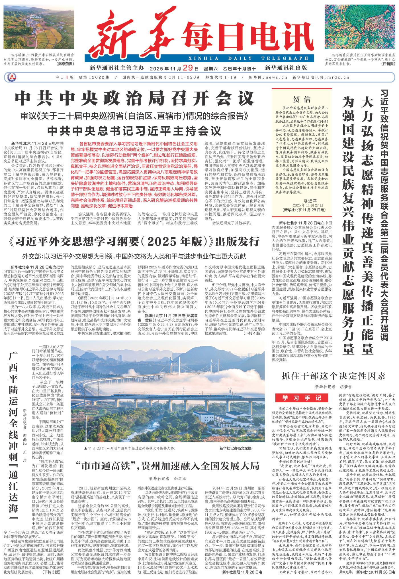 | ( 2025-11-29 ) 稿件来源:新华每日电讯 要闻 |