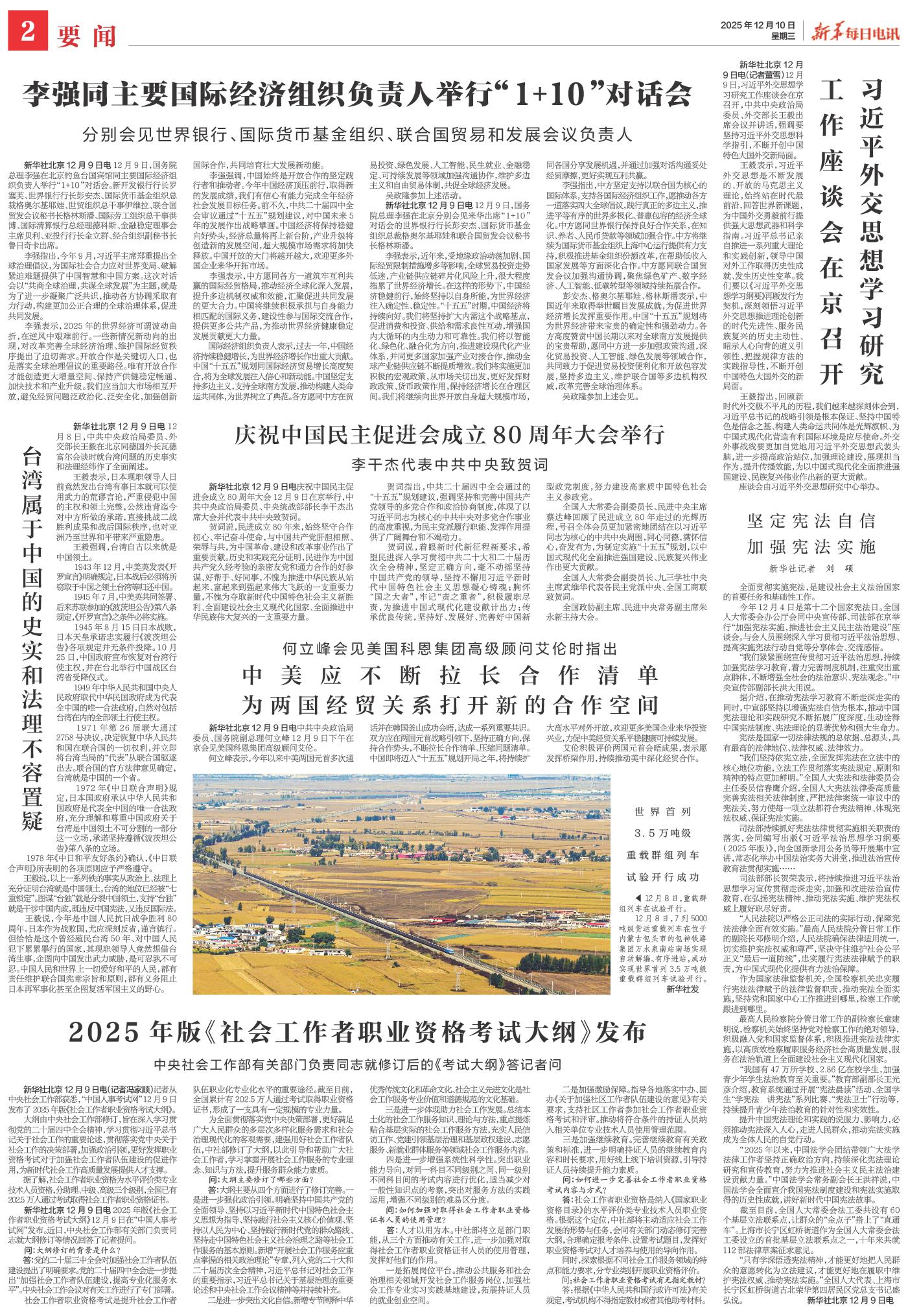 | ( 2025-12-10 ) 稿件来源:新华每日电讯 要闻 |