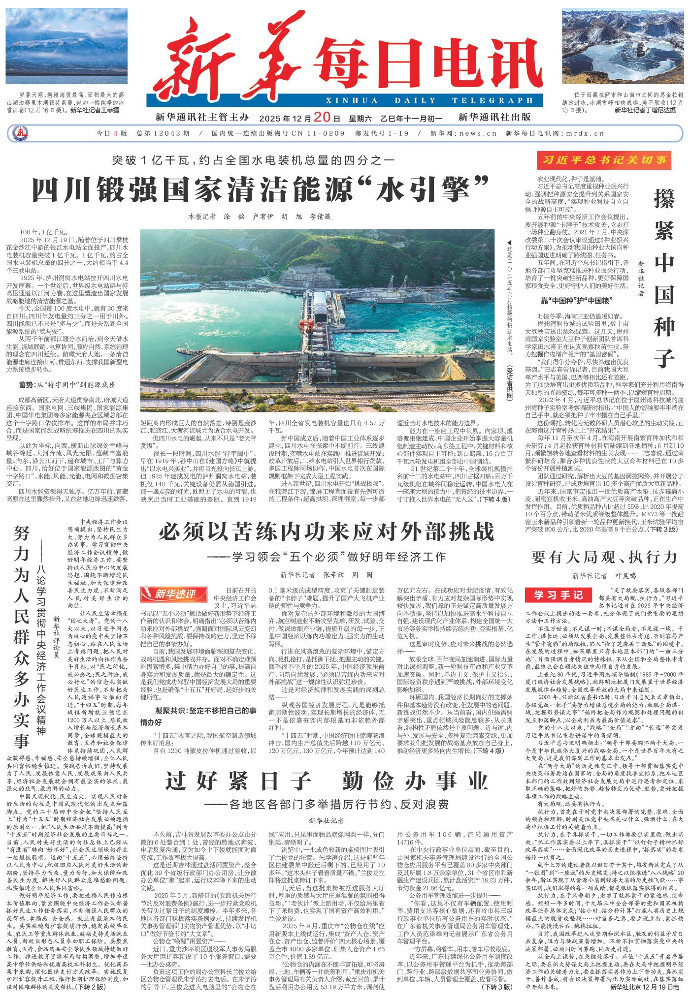 2025年12月19日,随着位于四川攀枝花金沙江中游的银江水电站全面投产,四川水电装机容量突破1亿千瓦。1亿千瓦,约占全国水电装机总量的四分之一,大约相当于4.4个三峡电站。