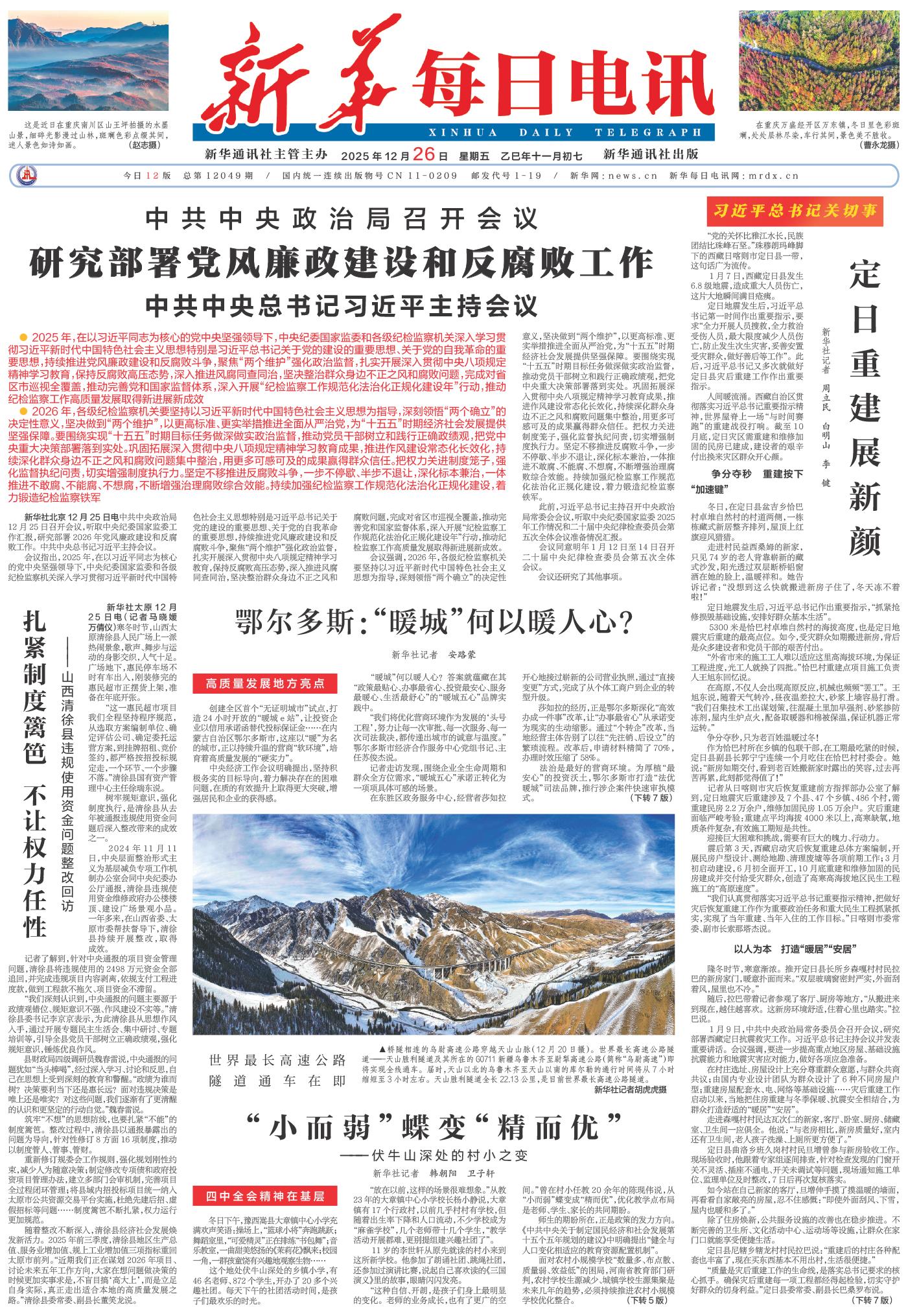 | ( 2025-12-26 ) 稿件来源:新华每日电讯 要闻 |