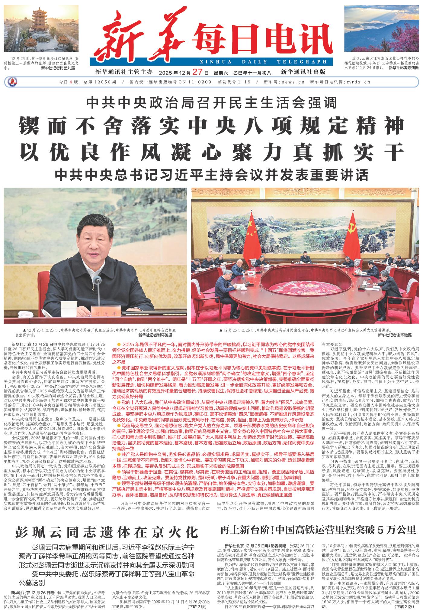 | ( 2025-12-27 ) 稿件来源:新华每日电讯 要闻 |