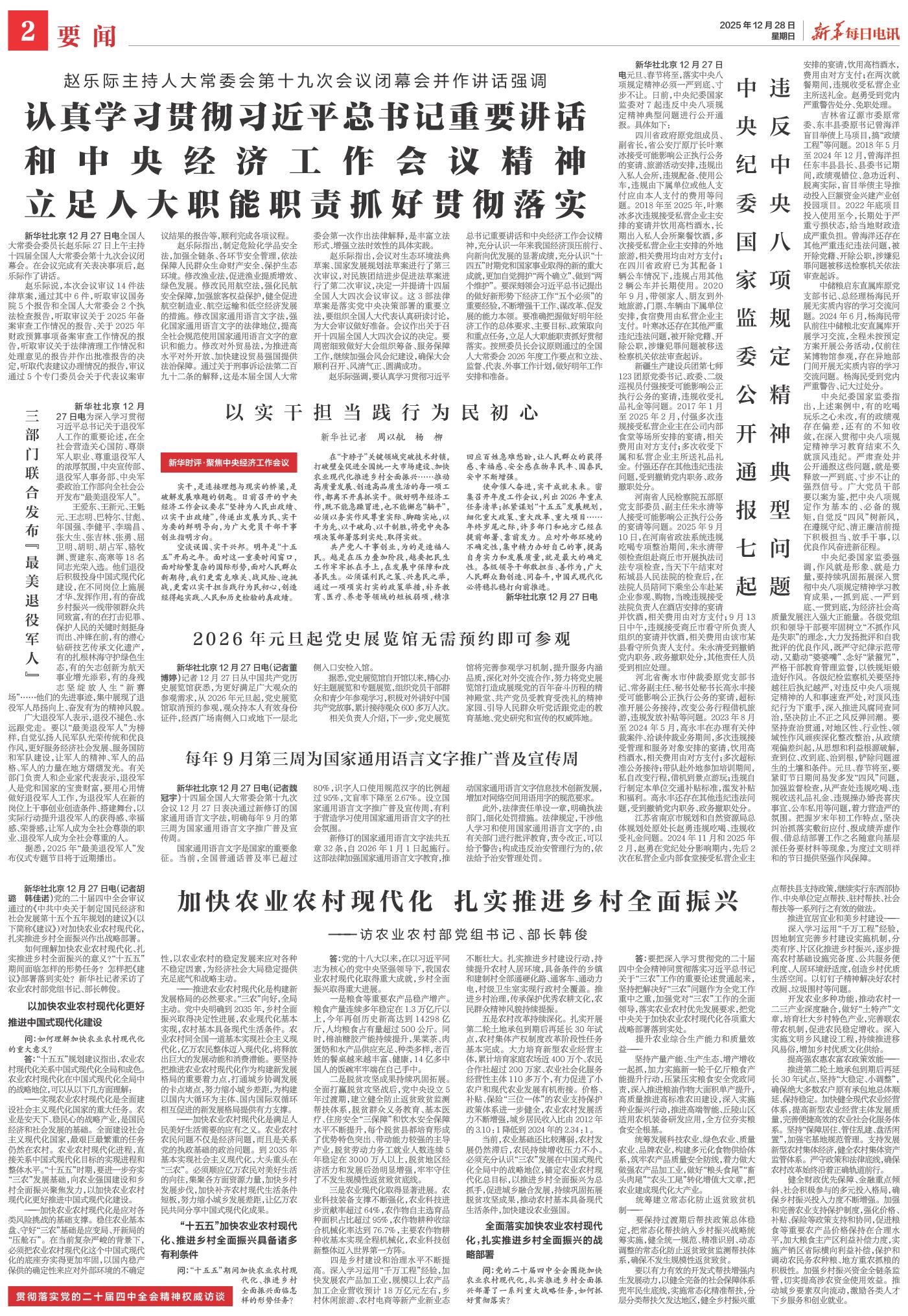 | ( 2025-12-28 ) 稿件来源:新华每日电讯 要闻 |