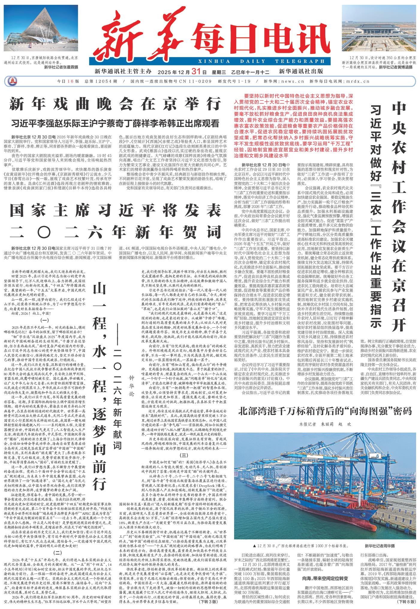 | ( 2025-12-31 ) 稿件来源:新华每日电讯 要闻 |