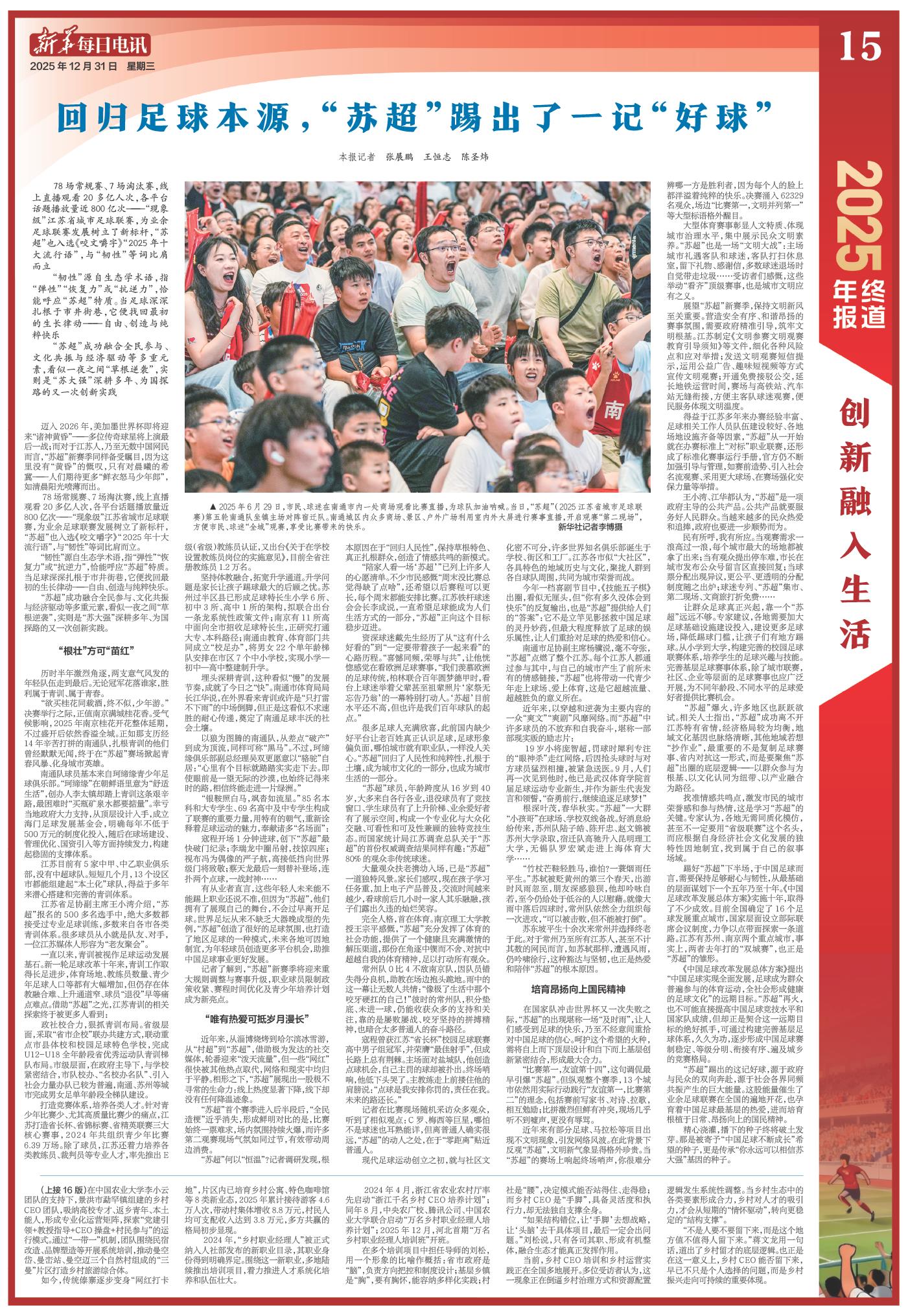 78场常规赛、7场淘汰赛,线上直播观看20多亿人次,各平台话题播放量近800亿次——“现象级”江苏省城市足球联赛,为业余足球联赛发展树立了新标杆,“苏超”也入选《咬文嚼字》“2025年十大流行语”,与“韧性”等词比肩而立。