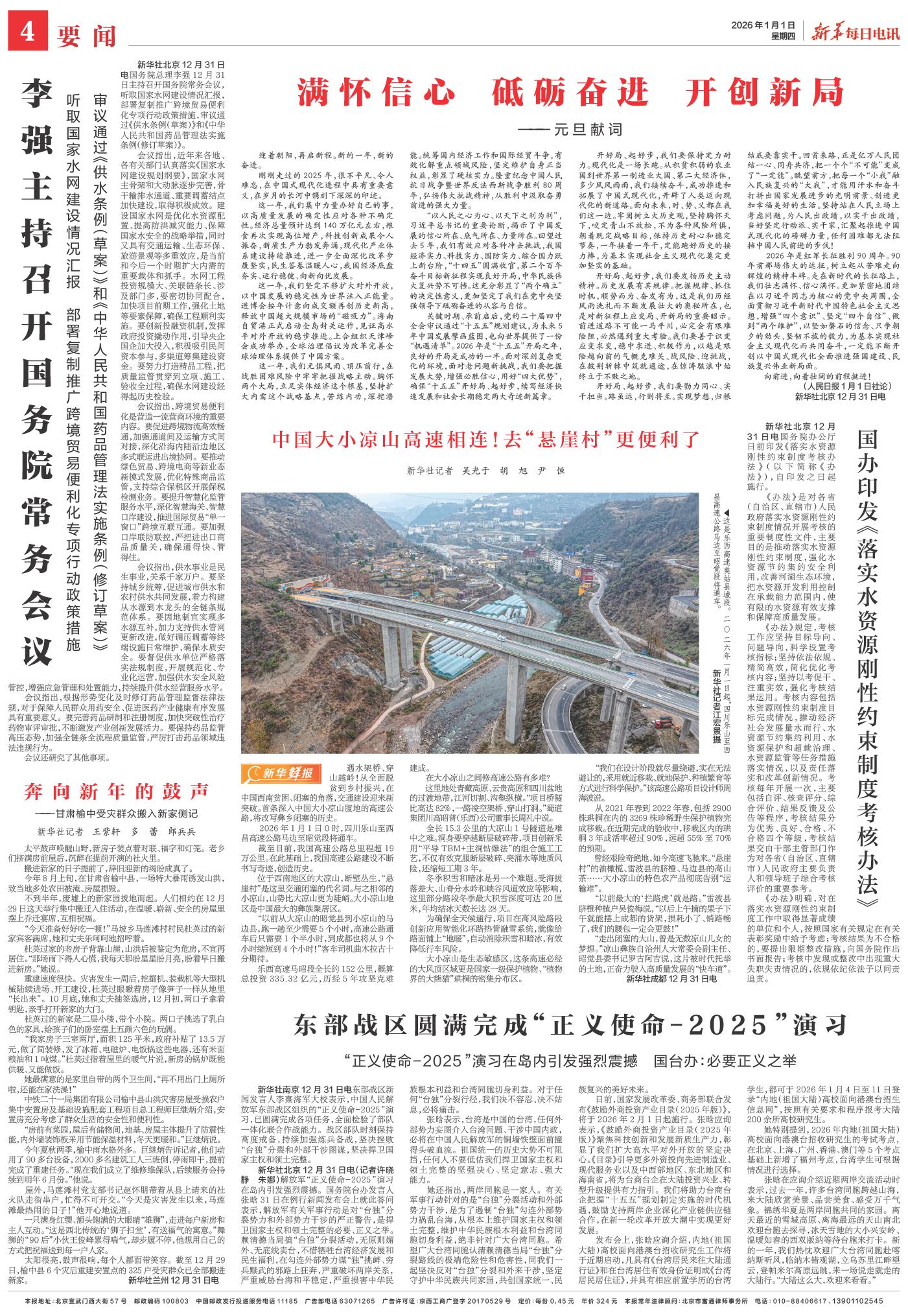 | ( 2026-01-01 ) 稿件来源:新华每日电讯 要闻 |