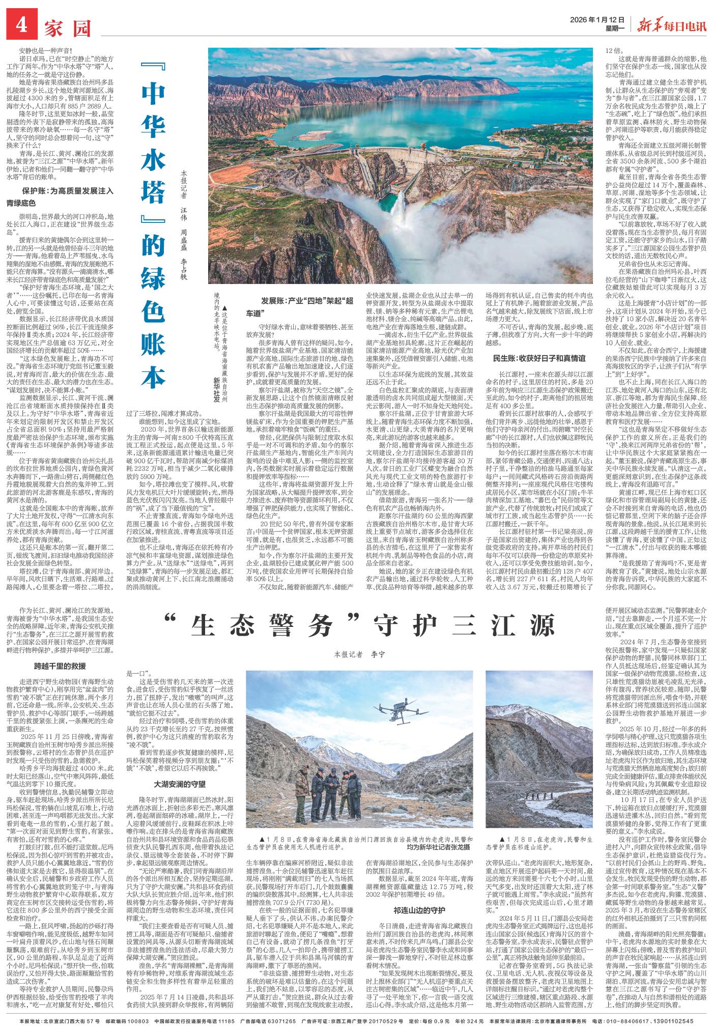 作为长江、黄河、澜沧江的发源地,青海被誉为“中华水塔”,是我国生态安全的战略屏障。近年来,青海公安机关推行“生态警务”,在三江之源开展雪豹救护、在国家公园开展日常巡护、在青海湖畔进行物种保护,多措并举呵护三江源。