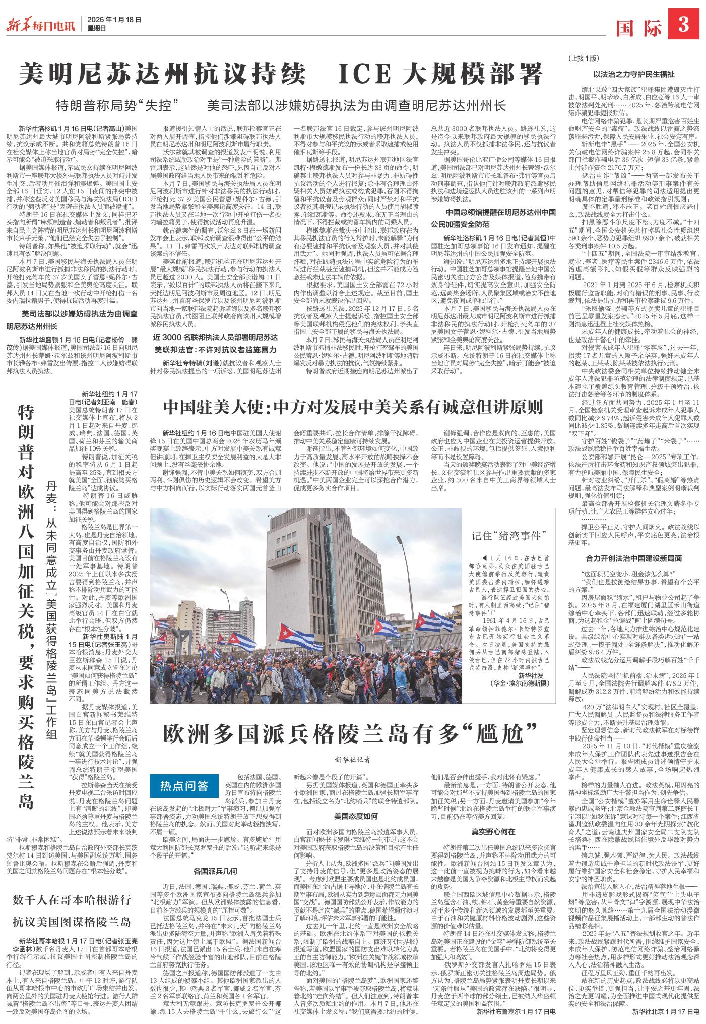 | ( 2026-01-18 ) 稿件来源:新华每日电讯 国际 |