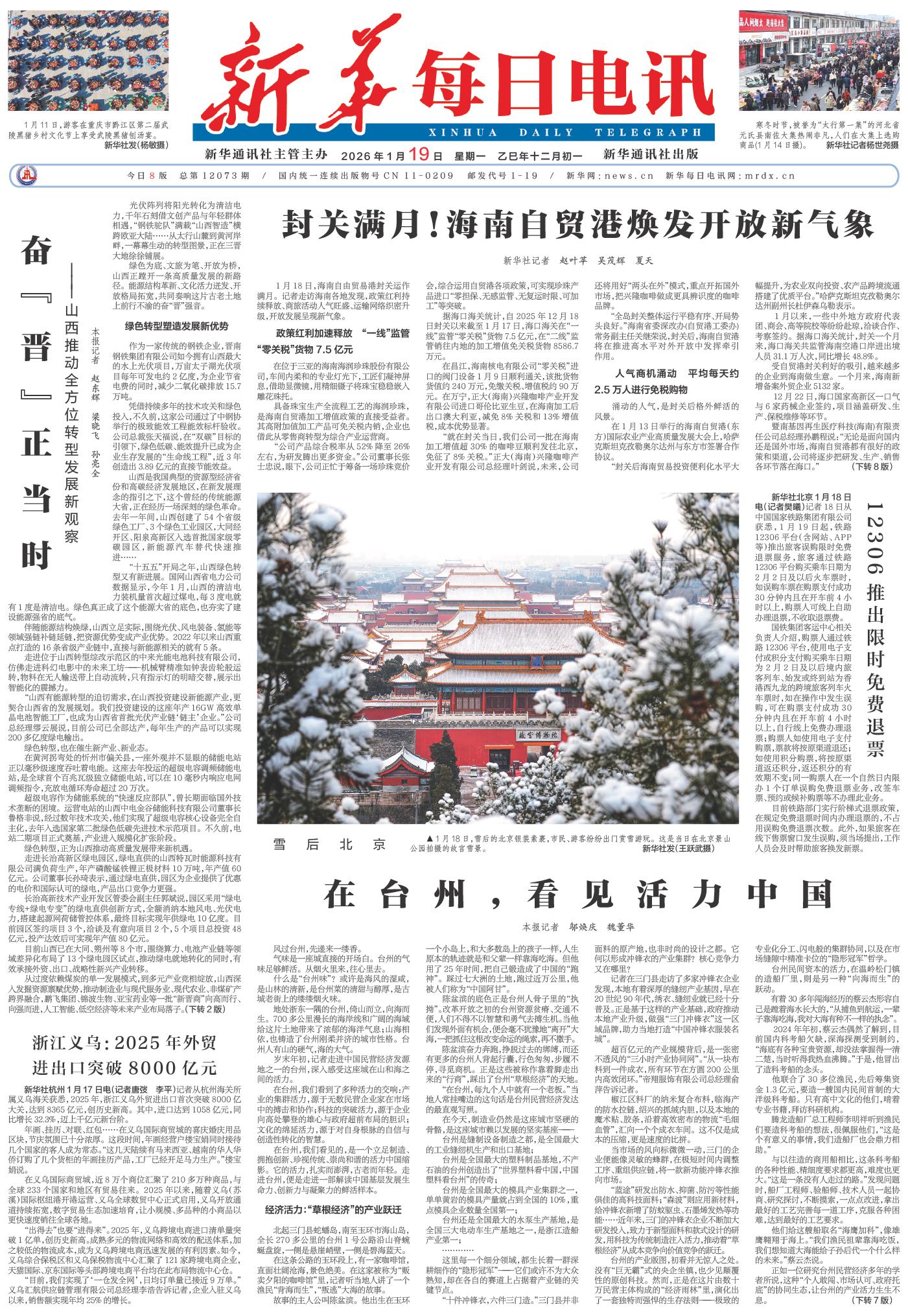 | ( 2026-01-19 ) 稿件来源:新华每日电讯 要闻 |