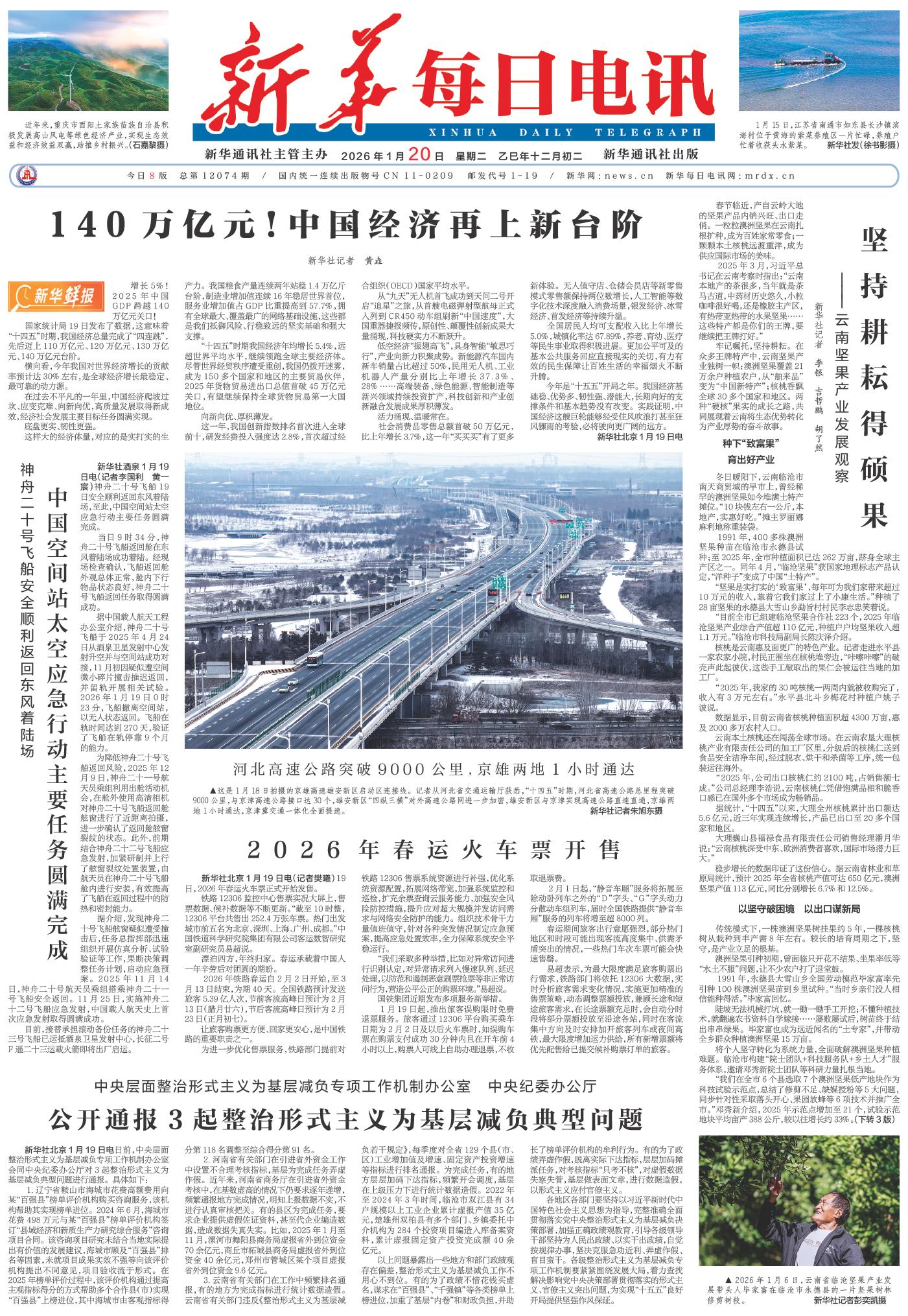 | ( 2026-01-20 ) 稿件来源:新华每日电讯 要闻 |
