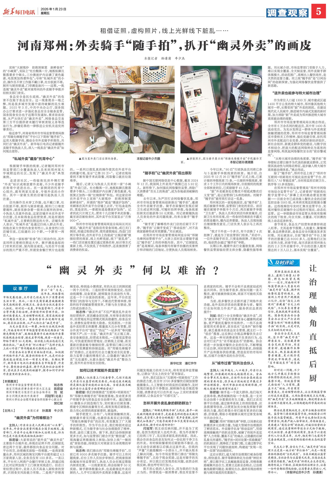 临近春节,河南省郑州市市场监督管理局推出“郑骑先锋随手拍”平台(以下简称“随手拍”),运用大数据手段,调动全市外卖骑手积极性,共同打击“幽灵外卖”。新华每日电讯记者跟随外卖骑手和执法人员,深入一线直击“幽灵外卖”如何现出原形。