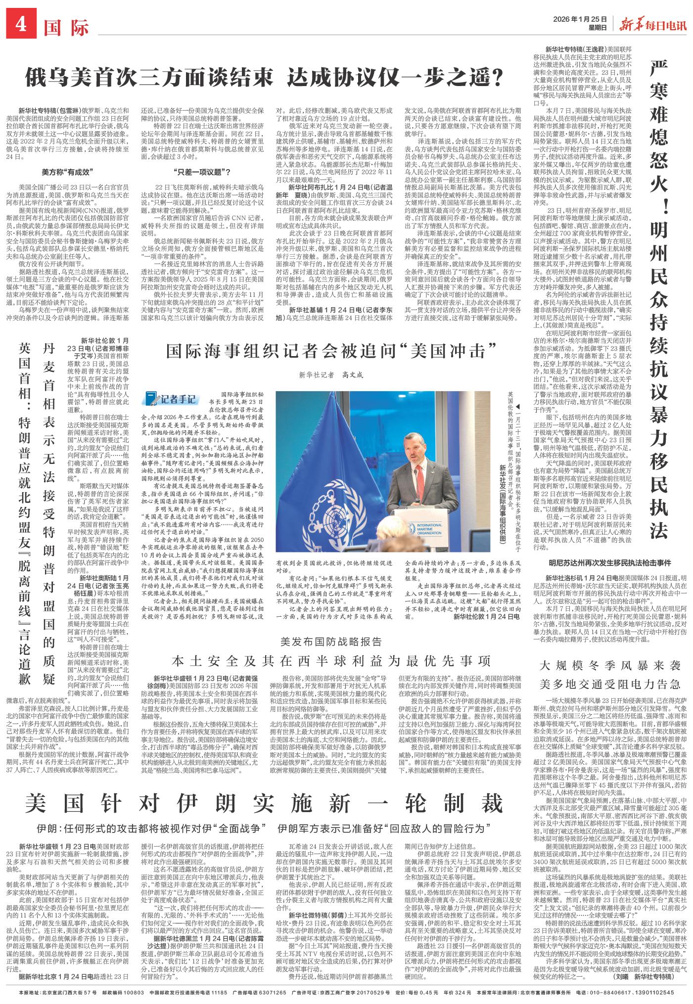 | ( 2026-01-25 ) 稿件来源:新华每日电讯 国际 |