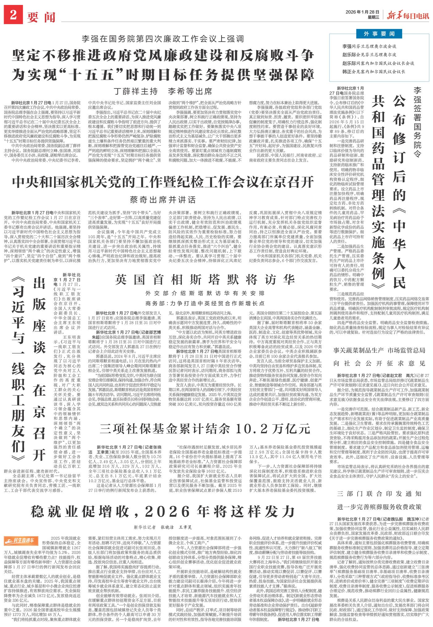 | ( 2026-01-28 ) 稿件来源:新华每日电讯 要闻 |