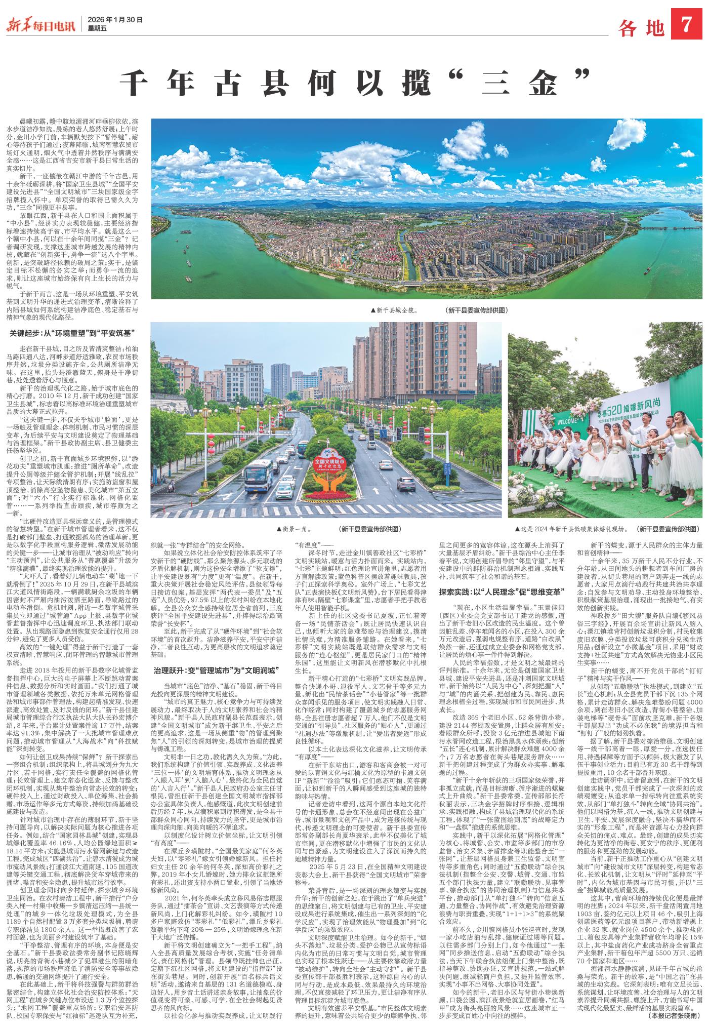 湄湘河水静静流淌,见证千年古城的沧桑与荣光。新干的故事,是“中国之治”在县域的生动实践。它深刻表明:唯有立足长远、系统谋划,让环境改善、社会治理与人的文明素养提升同频共振、螺旋上升,方能书写中国式现代化最坚实、最鲜活的基层实践篇章。