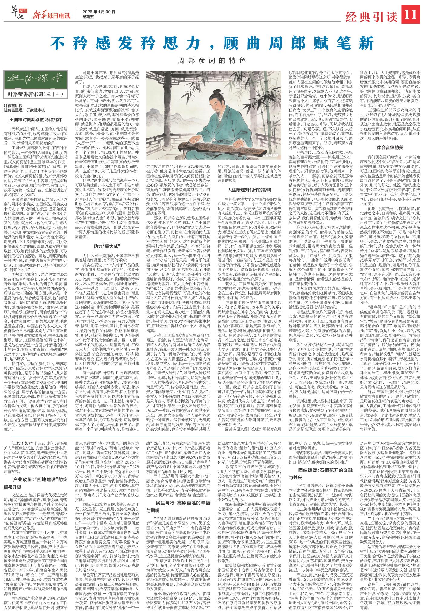 可是王国维在后期所写的《清真先生遗事》里,就把对于周邦彦的评价提高了。