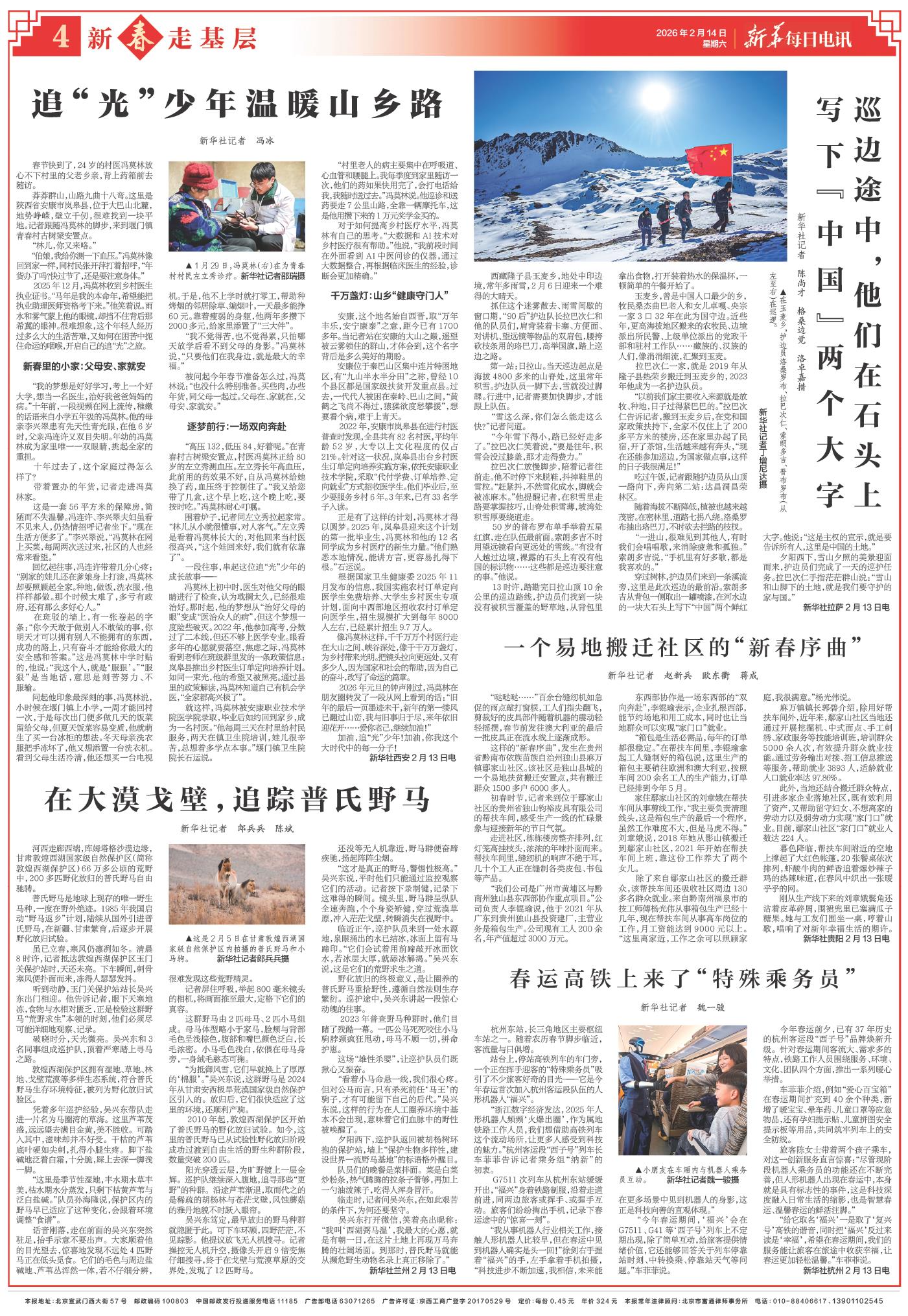 | ( 2026-02-14 ) 稿件来源:新华每日电讯 新春走基层 |