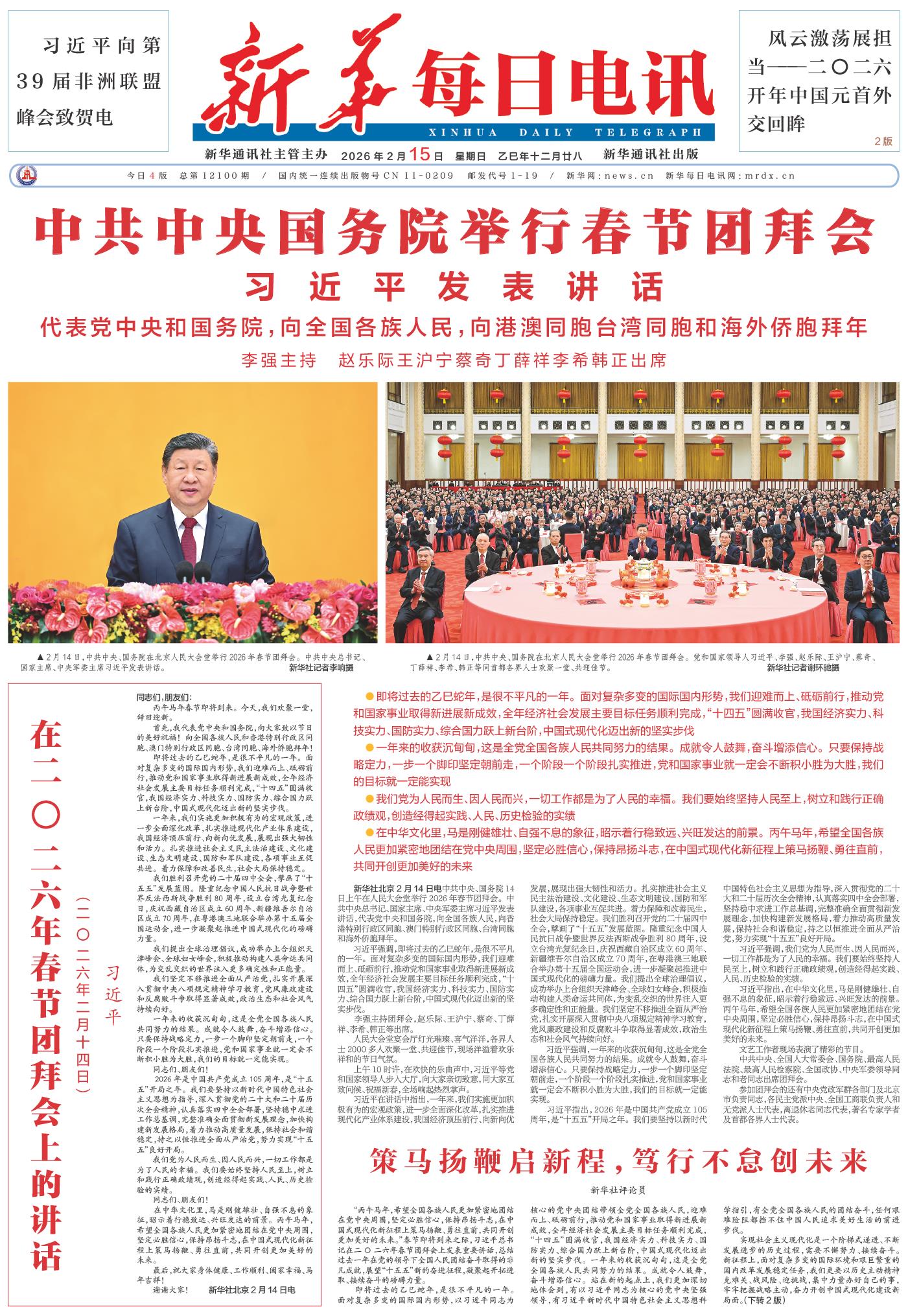 | ( 2026-02-15 ) 稿件来源:新华每日电讯 要闻 |