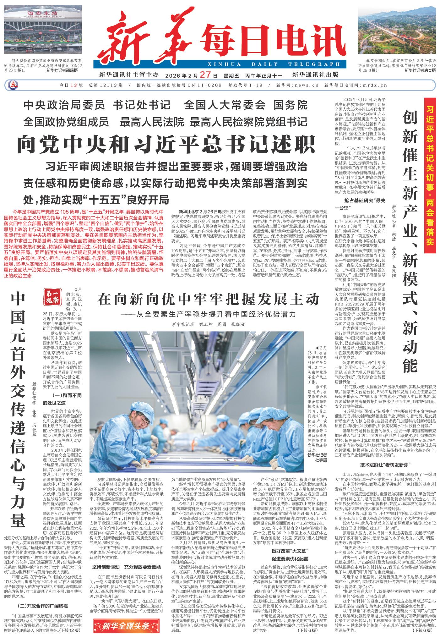 | ( 2026-02-27 ) 稿件来源:新华每日电讯 要闻 |