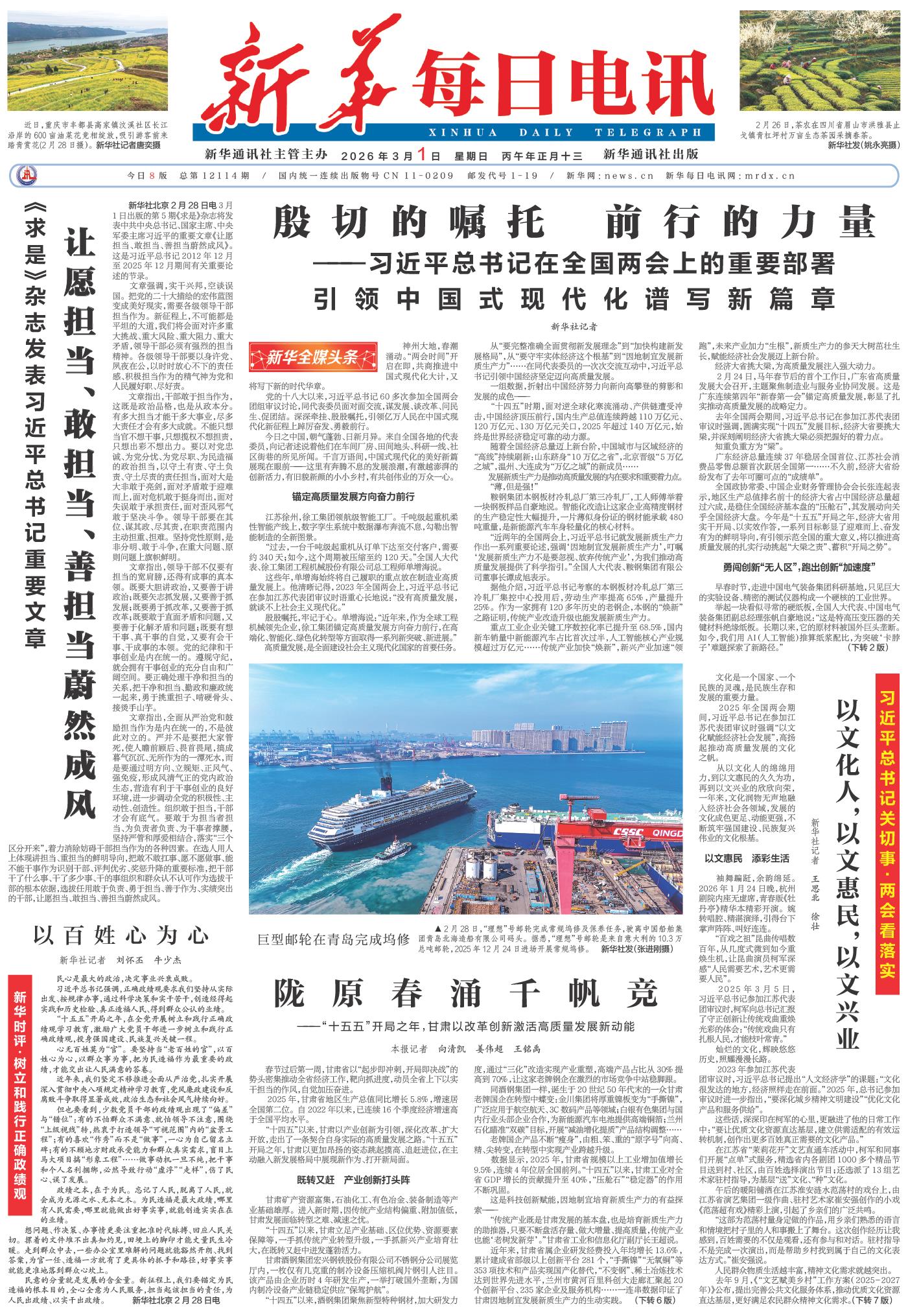 | ( 2026-03-01 ) 稿件来源:新华每日电讯 要闻 |
