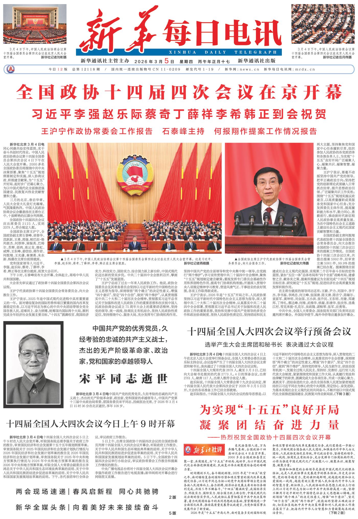 | ( 2026-03-05 ) 稿件来源:新华每日电讯 要 闻 |