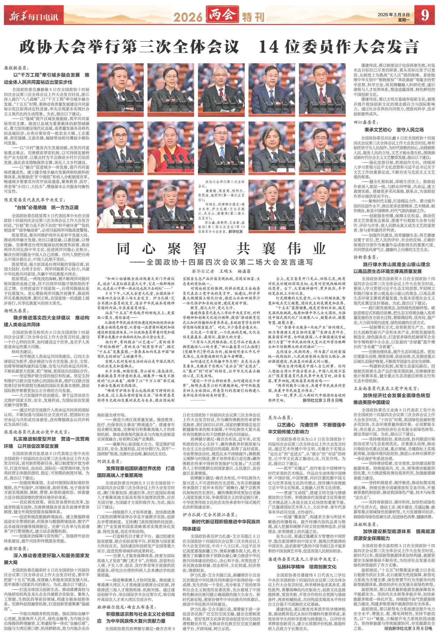 | ( 2026-03-09 ) 稿件来源:新华每日电讯 两会特刊 |