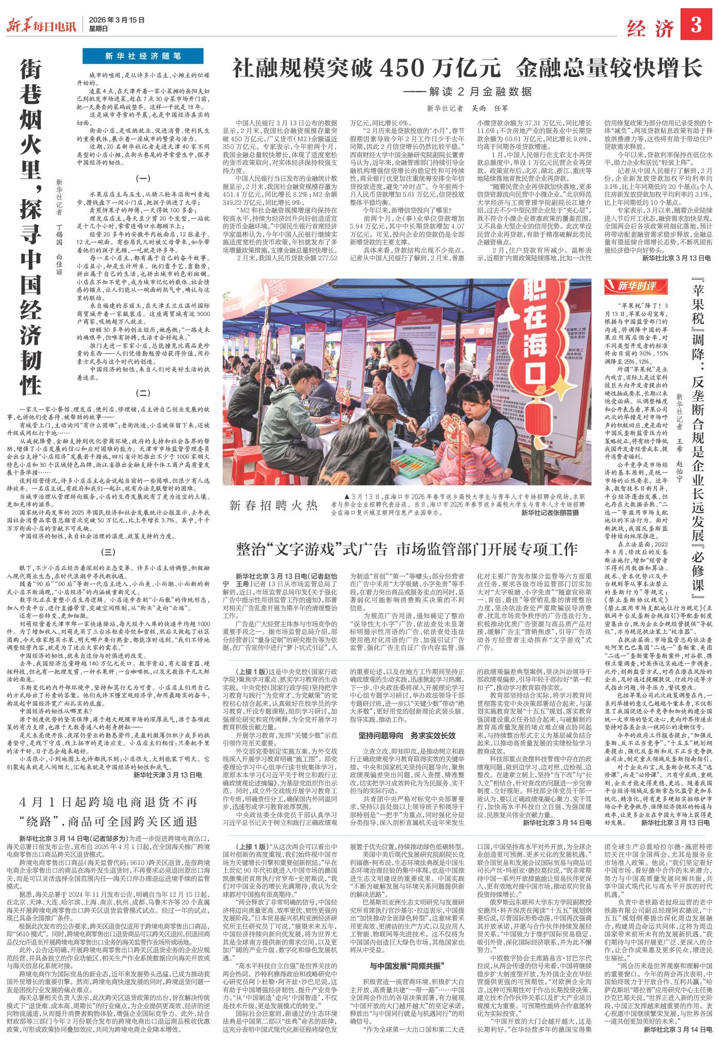 | ( 2026-03-15 ) 稿件来源:新华每日电讯 经济 |