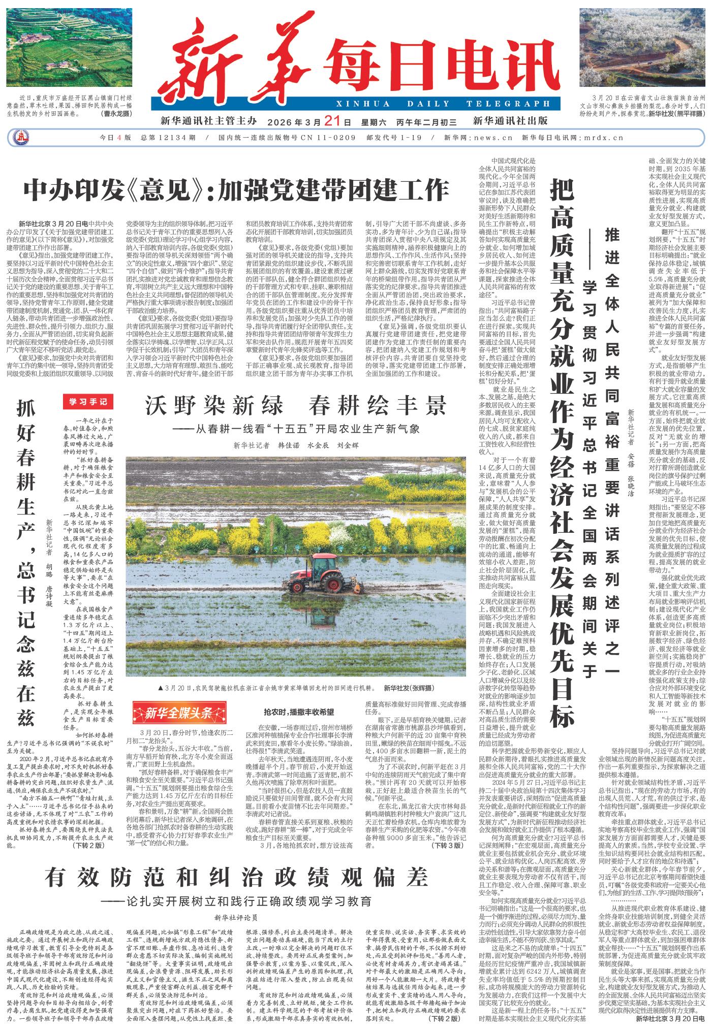 | ( 2026-03-21 ) 稿件来源:新华每日电讯 要闻 |