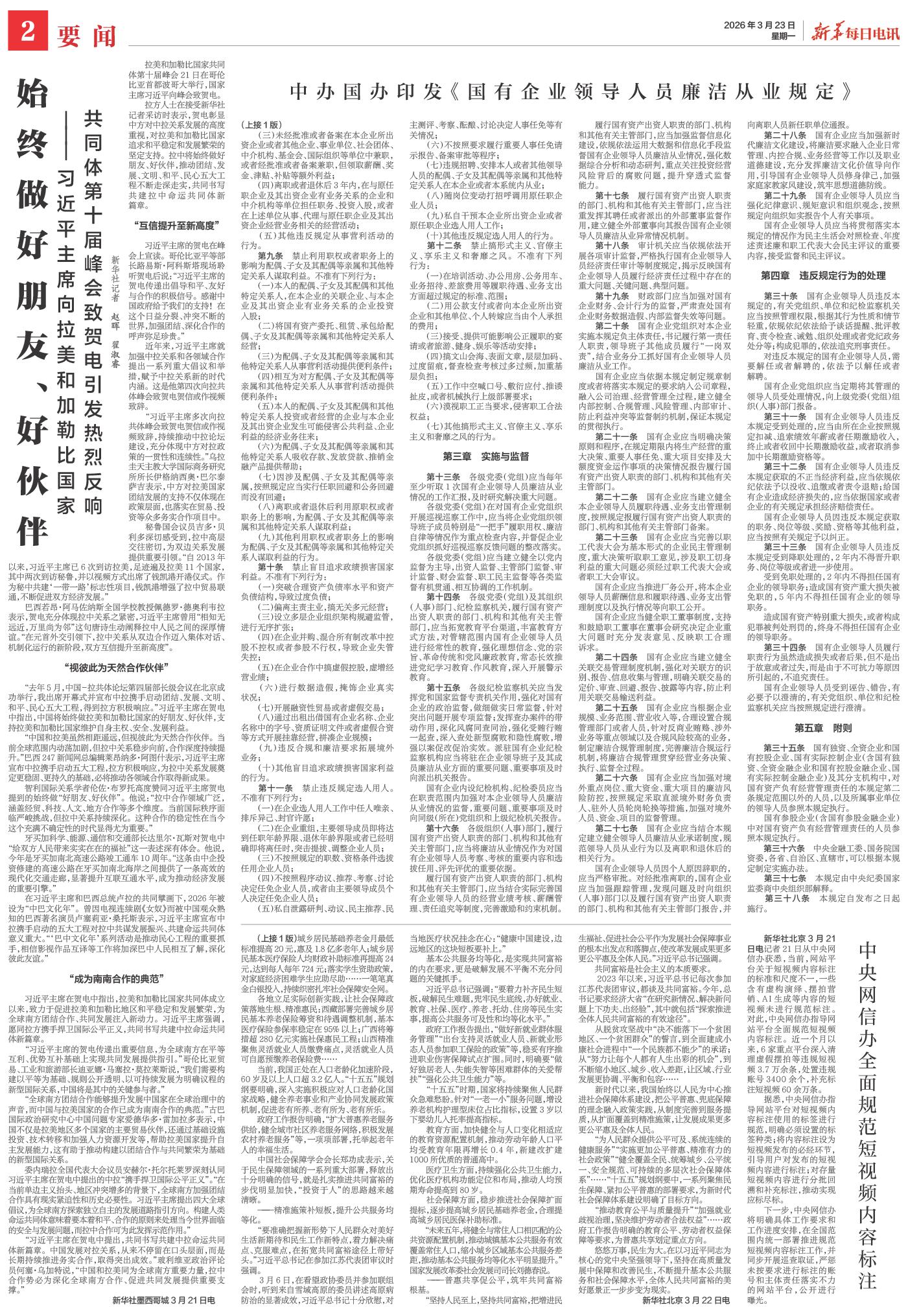 | ( 2026-03-23 ) 稿件来源:新华每日电讯 要闻 |
