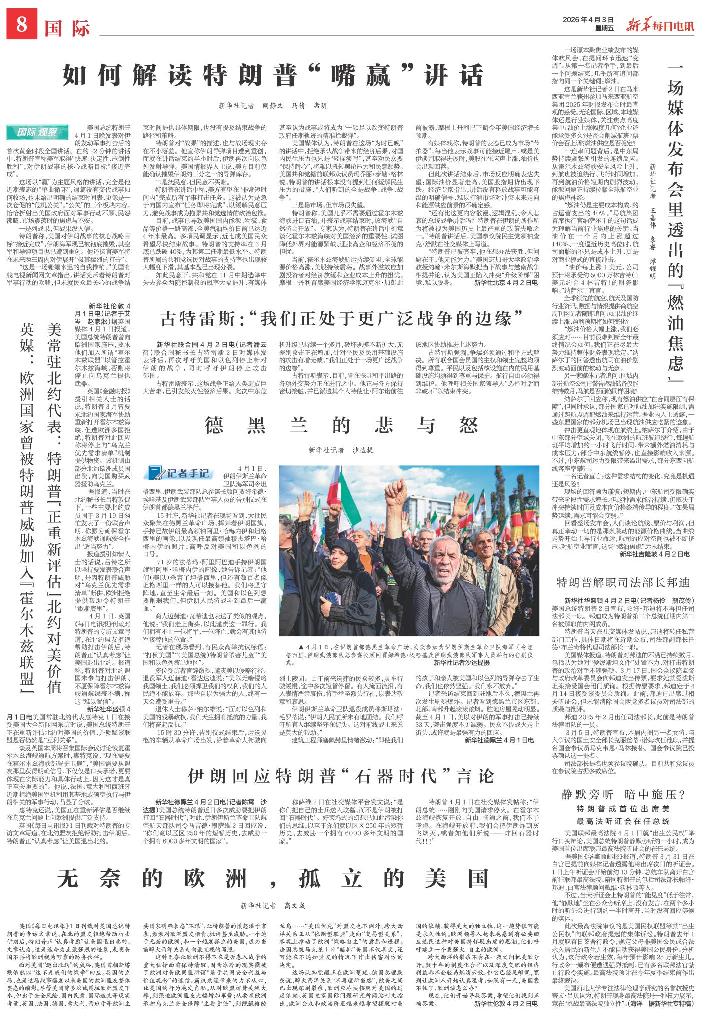 | ( 2026-04-03 ) 稿件来源:新华每日电讯 国际 |
