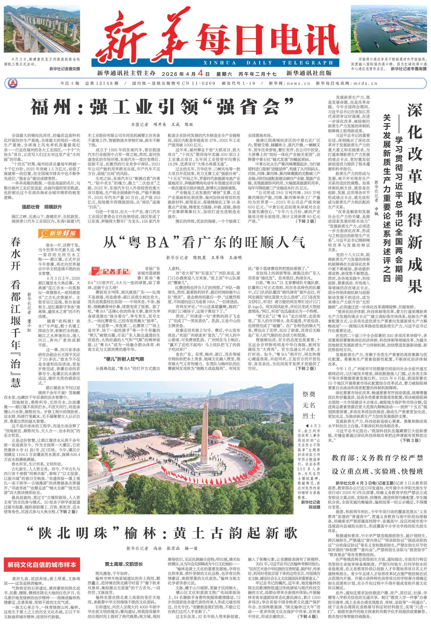 | ( 2026-04-04 ) 稿件来源:新华每日电讯 要闻 |