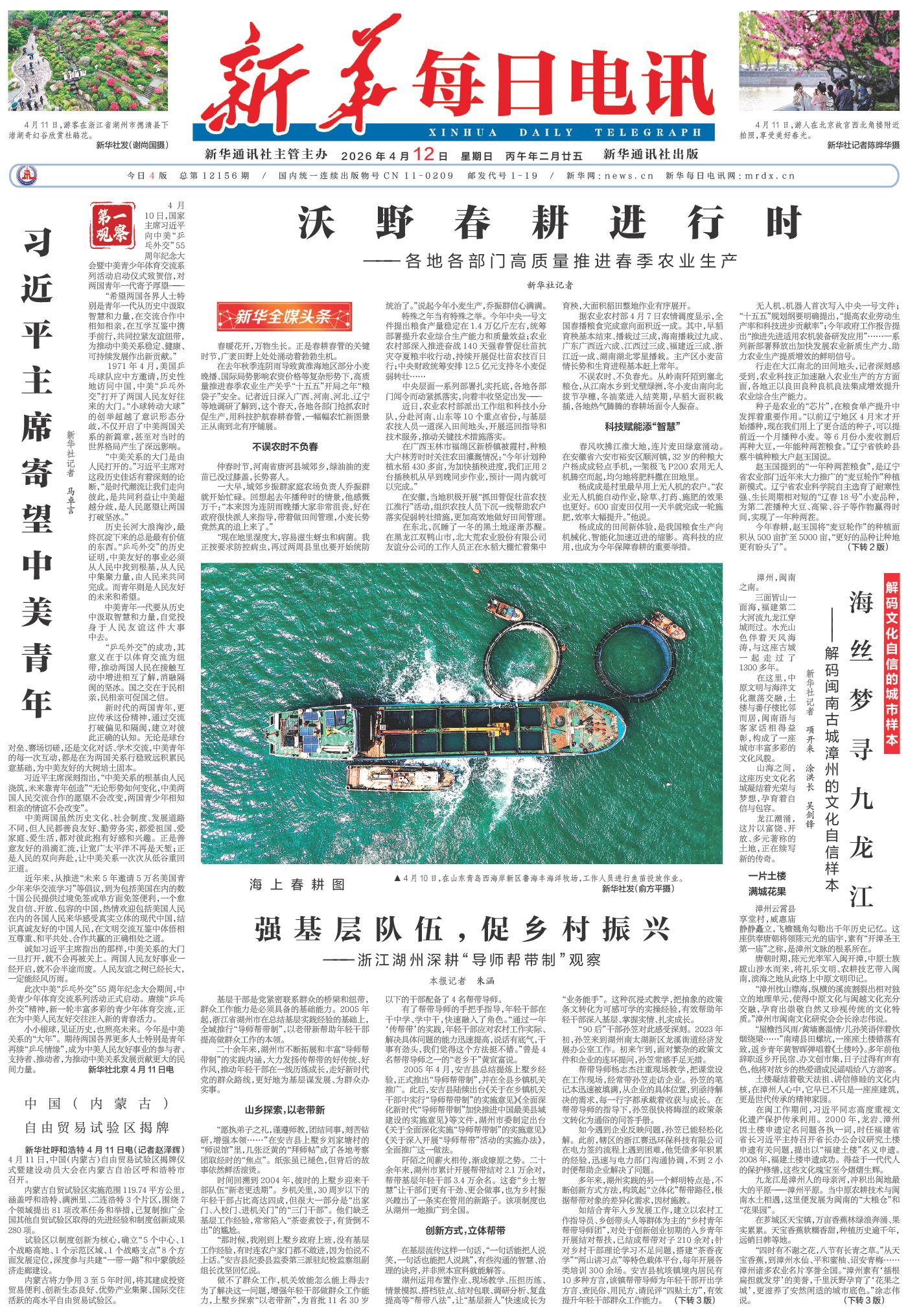 | ( 2026-04-12 ) 稿件来源:新华每日电讯 要闻 |