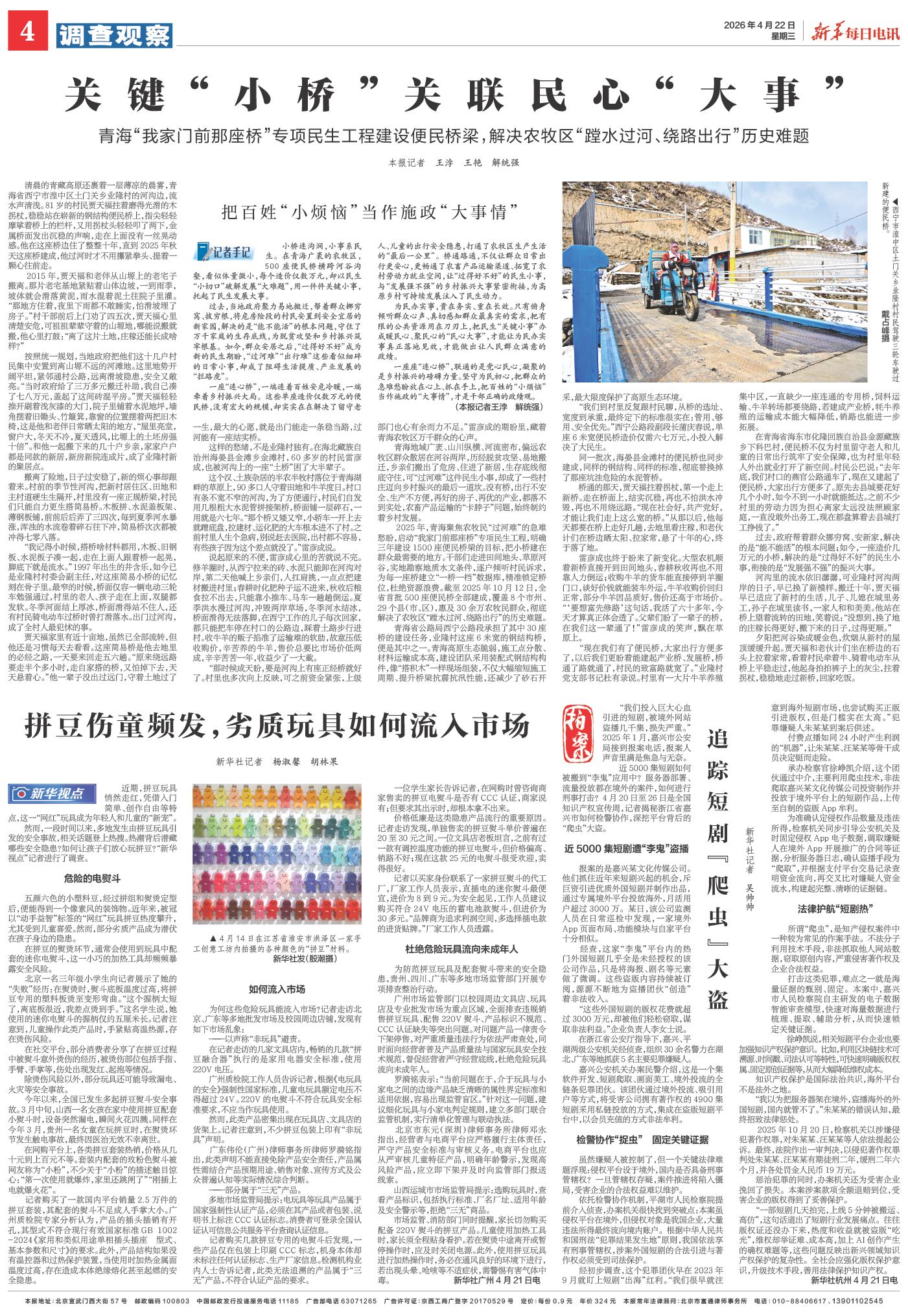 | ( 2026-04-22 ) 稿件来源:新华每日电讯 调查观察 |
