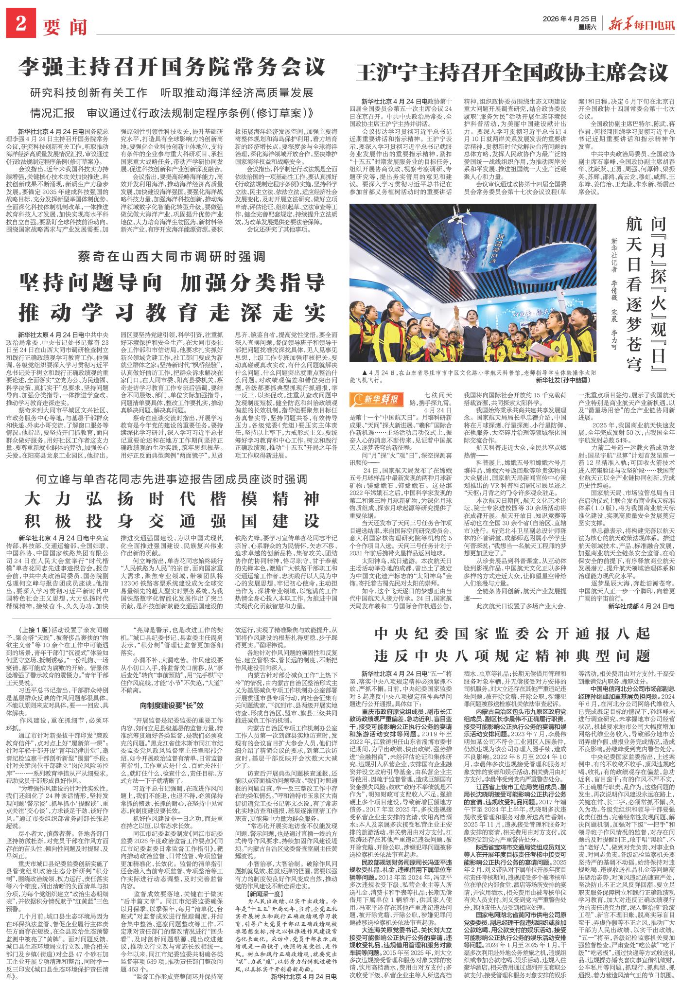 | ( 2026-04-25 ) 稿件来源:新华每日电讯 要闻 |