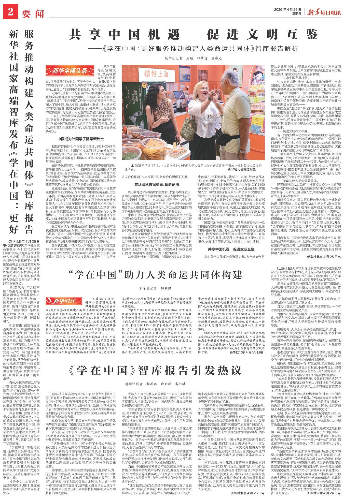 | ( 2026-04-26 ) 稿件来源:新华每日电讯 要闻 |